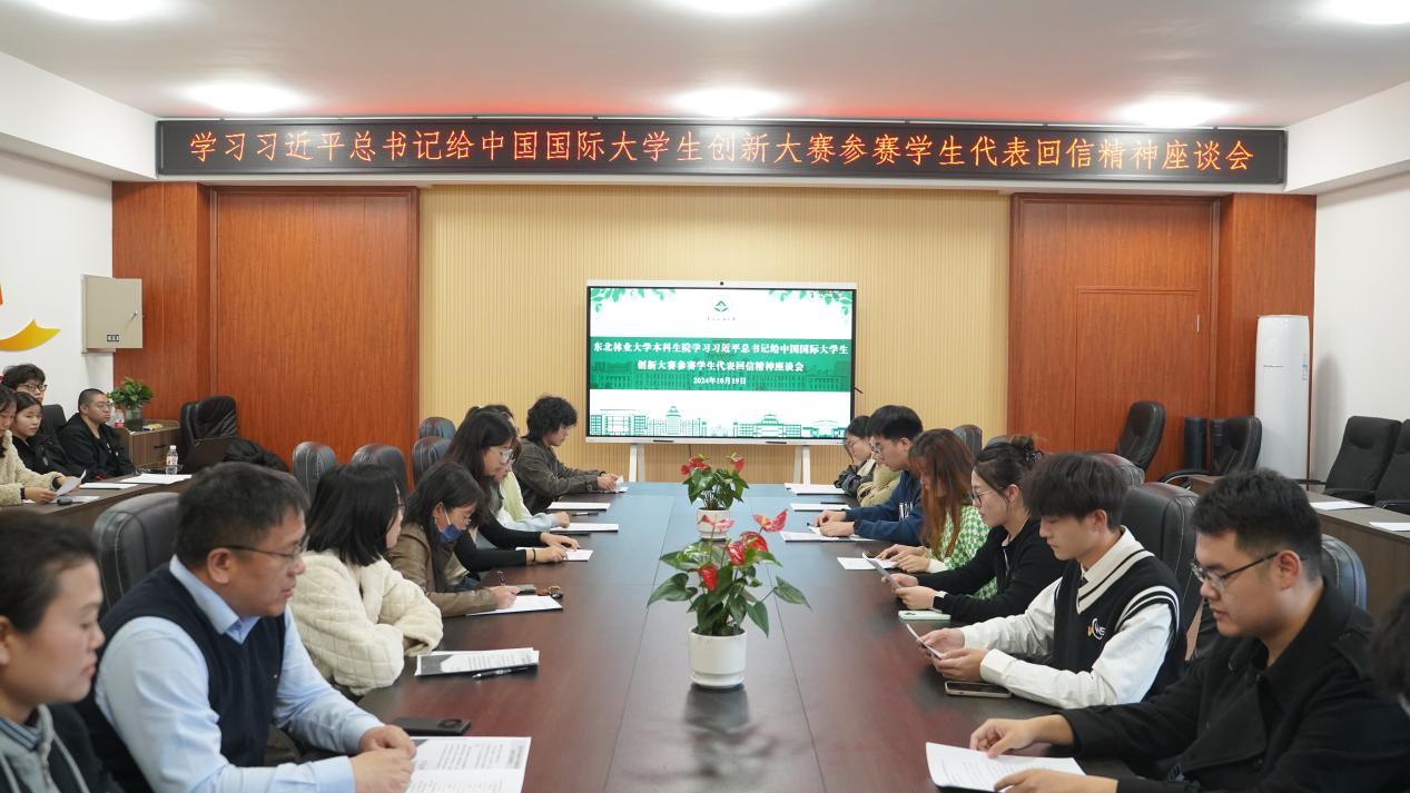 近日,习近平总书记给中国国际大学生创新大赛参赛学生代表回信,对他们予以亲切勉励并提出殷切希望。10月19日下午,本科生院召开学习习近平总书记给中国国际大学生创新大赛参赛学生代表重要回信精神座谈会,本科生院副院长、培养处处长杨洪学,中国国际大学生创新大赛参赛师生代表,本科生院学生干部代表等参会。座谈会由本科生院培养处副处长马翔宇主持。