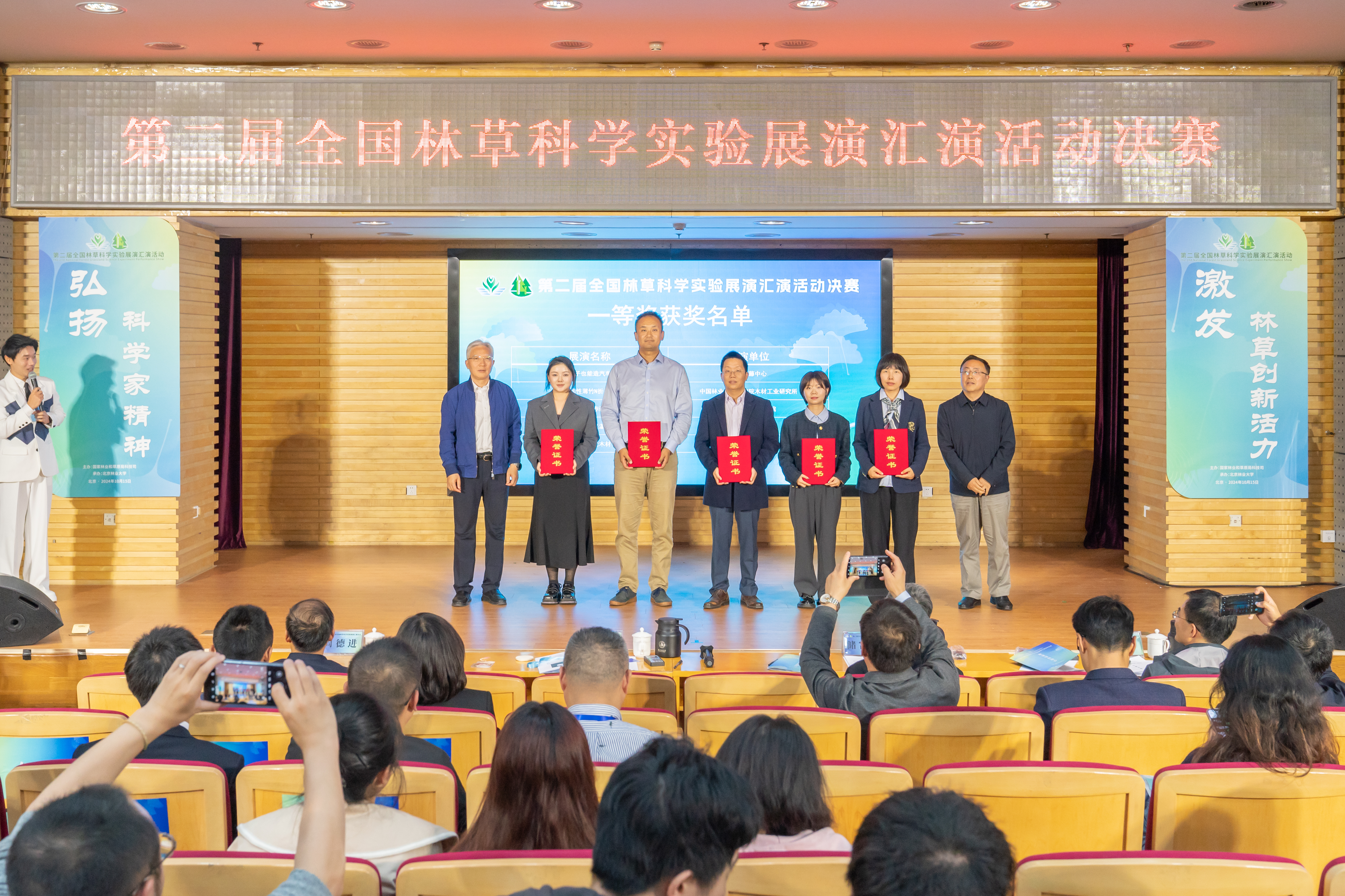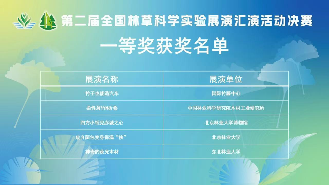 中国工程院院士、中国林业科学研究院原院长张守攻,国家林业和草原局科技司副司长王连志,北京林业大学校长李召虎,中国林业科学研究院原院长储富祥出席活动。我校参赛团队凭借实验展演项目《神奇的夜光木材》,斩获全国一等奖,全国仅有5个项目获此殊荣。