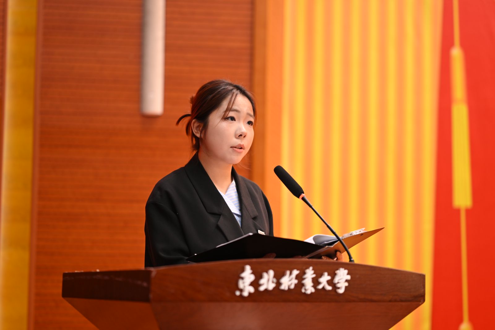 团省委学校部负责人杨頔宣读《关于表彰2023—2024年度“优秀学生分会”的决定》。省学联主席、哈尔滨工业大学郭旭,兄弟高校代表、吉林大学学生会主席房安国,学校工会常务副主席宋福南,分别向大会的召开表示祝贺。清华大学、北京大学、中国农业大学、西北农林科技大学、哈尔滨工程大学等30余所兄弟高校学生会组织向大会发来贺信。