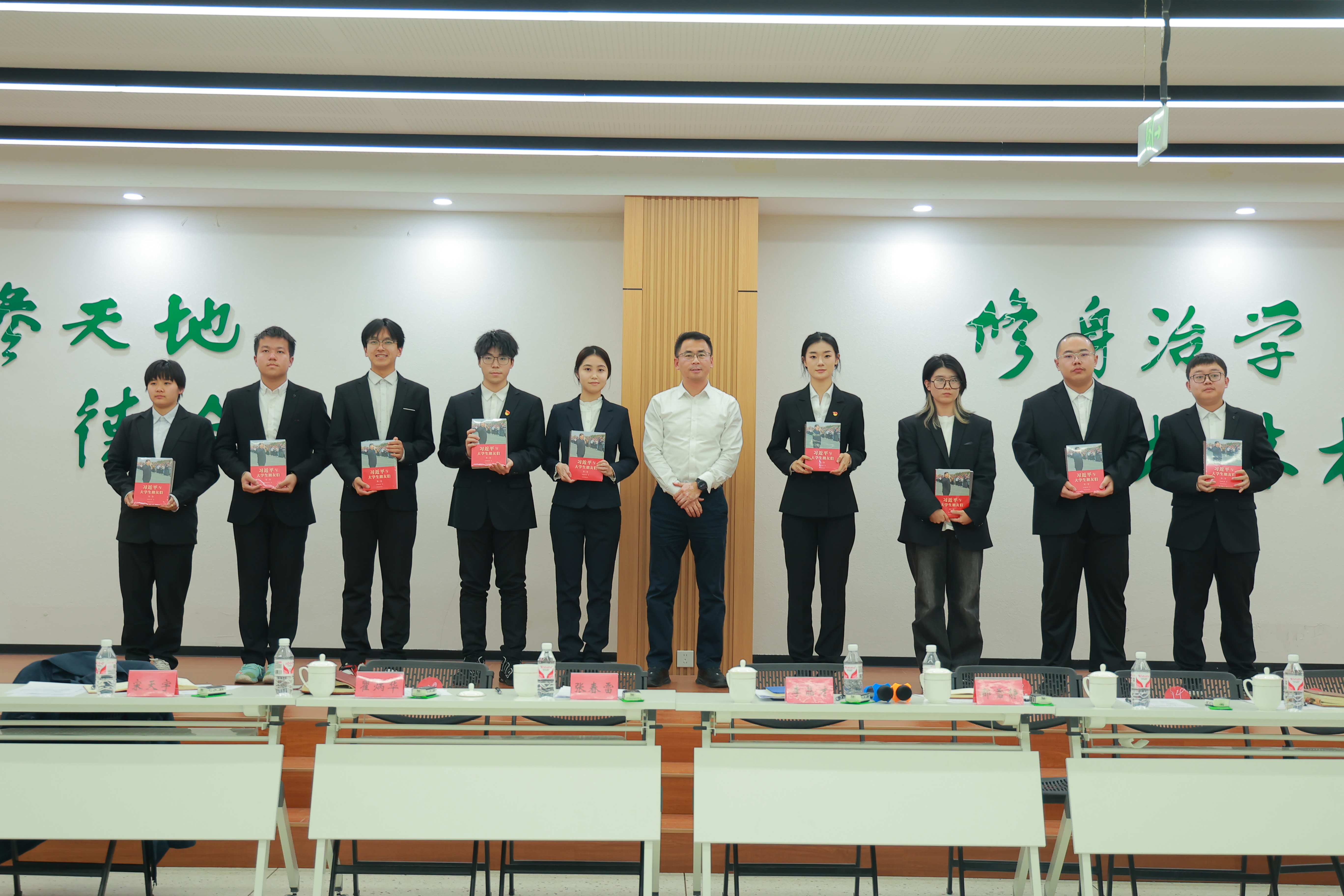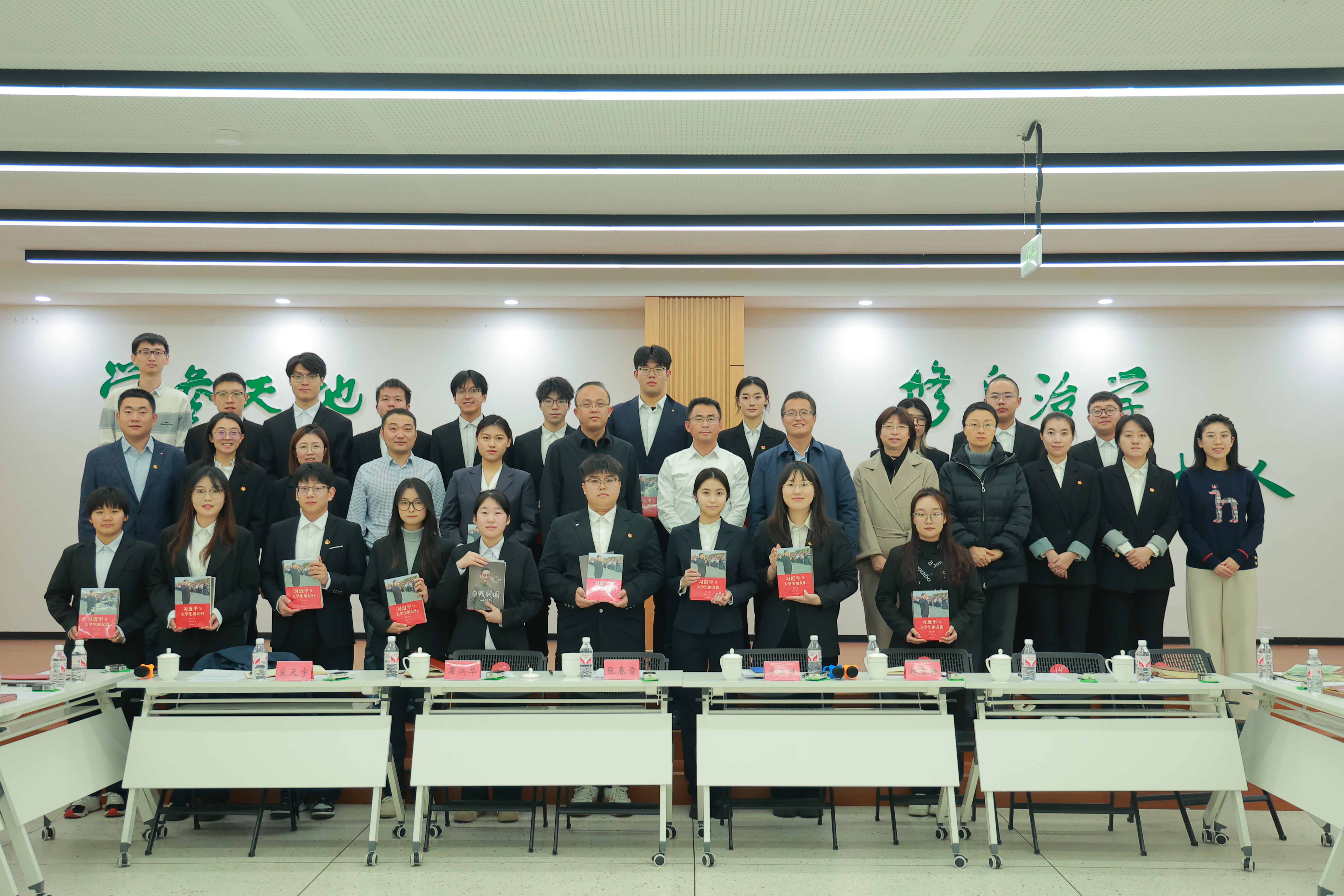 会上,张春雷为学生干部代表发放了《习近平与大学生朋友们》(第二卷)以及亲笔签名的《自我突围》学习书籍。团委书记李晶才详细介绍了本次团学组织换届的整体情况以及近三年团学组织主要学生干部毕业跟踪培养情况。