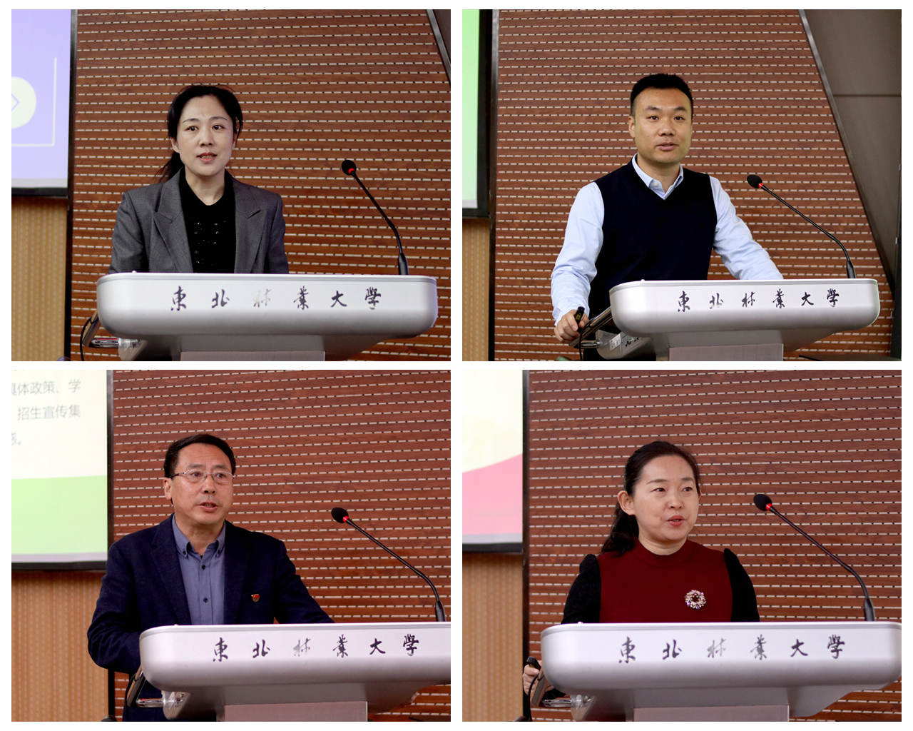 会上,本科生院本科生招生办公室主任孙晓芳介绍了学校当前本科招生工作背景,汇报了学校2024年本科招生工作开展情况和生源质量情况,指出了当前学校本科招生工作面临的困难和挑战,并提出下一阶段工作举措。林学院副院长段亮亮、马克思主义学院党委书记吴庆禹、机电工程学院副教授李丹丹分别代表招生工作组和联络员,分享了招生工作的经验和感想。