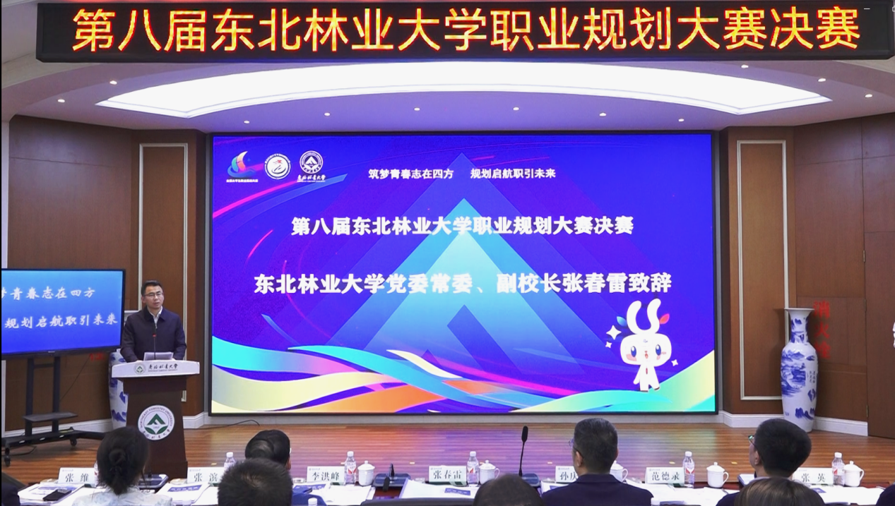 为贯彻落实党中央、国务院关于高校毕业生就业工作决策部署,推动我校就业指导工作与思想政治教育紧密结合、与专业教育深度融合,引导学生树立正确择业就业观,我校于11月30日在动保楼331举办以“筑梦青春志在四方 规划启航职引未来”为主题的第八届东北林业大学职业规划大赛决赛。校党委常委、副校长张春雷,黑龙江省大学生就业创业指导中心大赛观察员、就业创业服务部部长孙庆彬、副部长王妍,学校就业主管部门负责同志、各学院党委副书记、指导教师及学生代表200余人现场观赛。