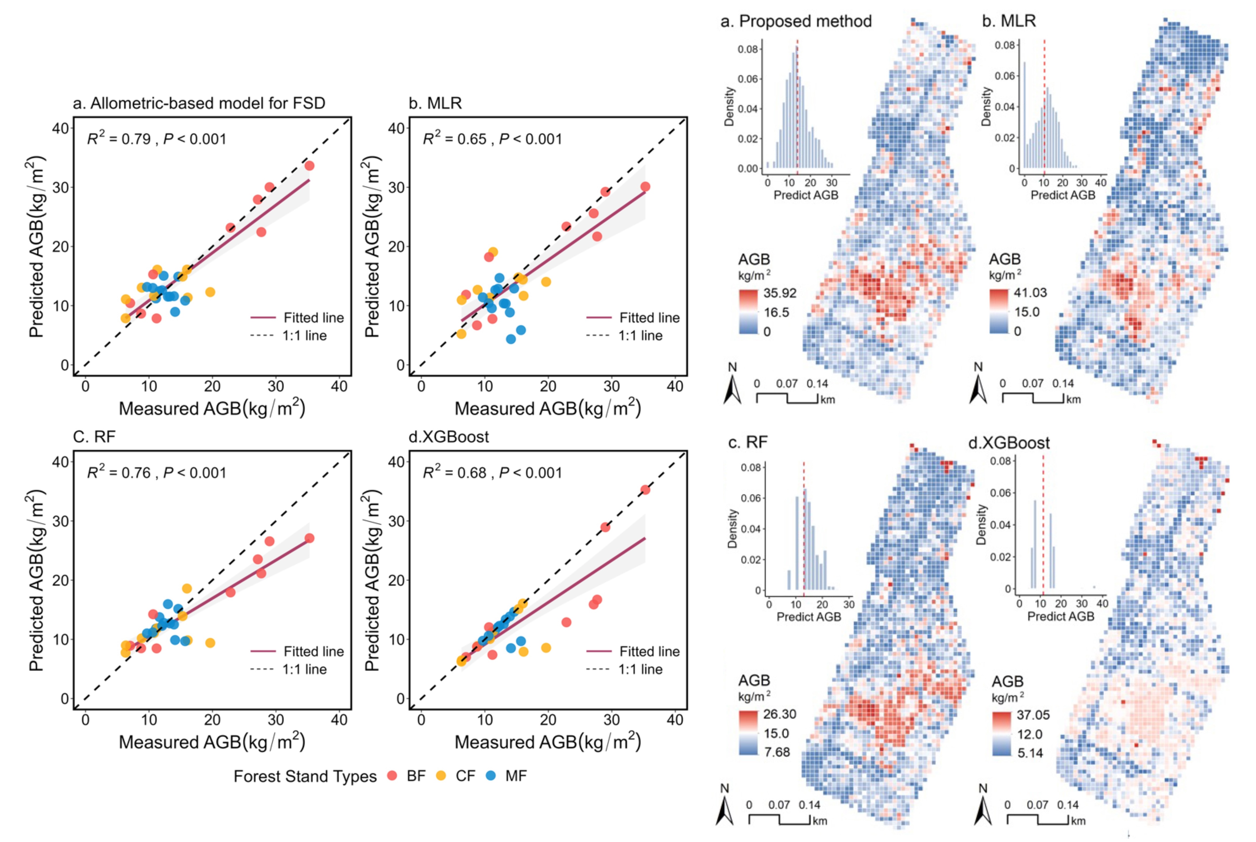 图1 结构多样性异速生长建模的地上生物量估算结果对比及空间可视化