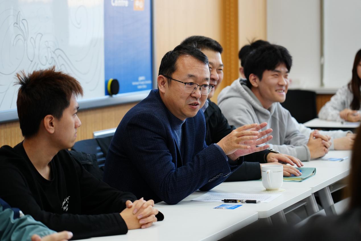 李明泽对学生的回应逐一细致点评,伴随交流互动的逐步深入,现场研讨氛围愈发浓厚热烈。李明泽提出三点期望,一是明晰学业规划,着力培育自主学习与终身学习能力;二是胸怀远大抱负,全力助推学校学科建设与教育创新发展;三是厚植家国情怀,积极投身国家教育现代化建设,立志成为兼具家国情怀与国际视野的新时代国际化复合型人才,书写无愧于时代、人民与历史的华章。