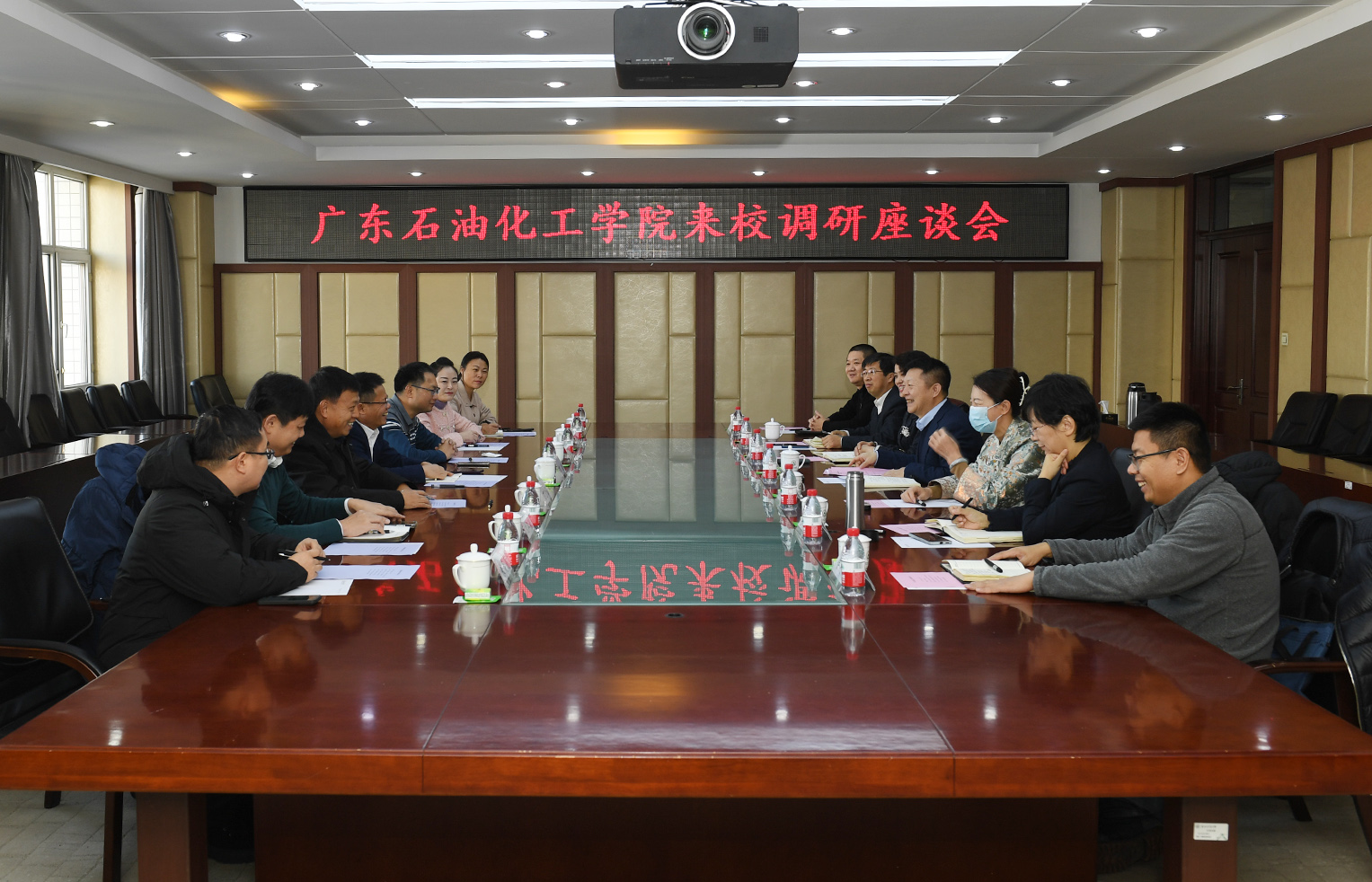 12月29日,广东石油化工学院党委常委、副校长万勇带队来我校调研。学校在综合办公楼8楼会议室举办调研座谈会。党委常委、副校长翟雪峰出席并主持座谈会,相关职能部门和学院负责人参加座谈会。