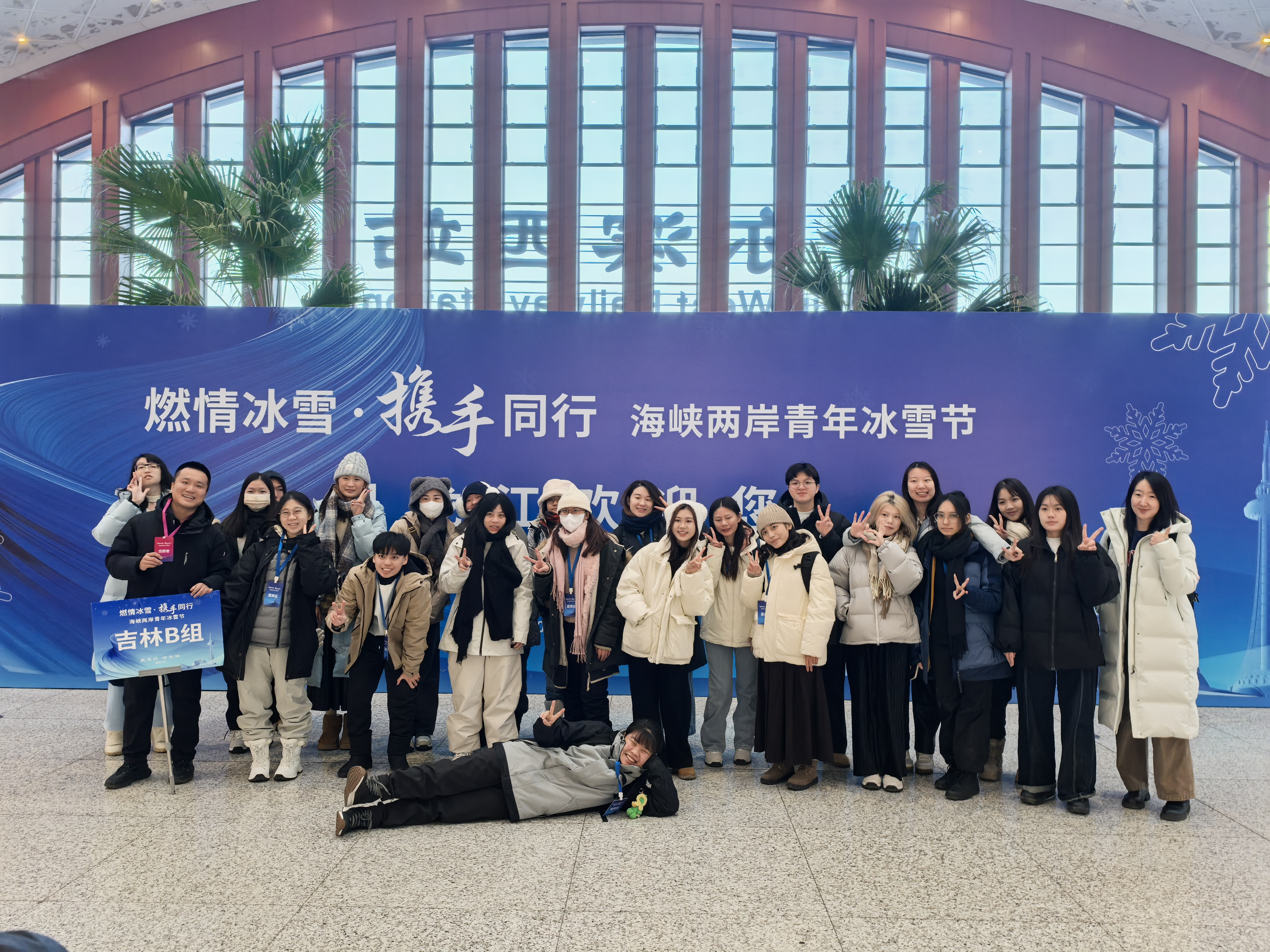 活动期间,我校主要负责广东、江苏、吉林、黑龙江4个省份近400名台湾青年代表的接待、引导等保障工作。5名教师与台湾青年携手同行,一起参加第九届亚洲冬季运动会场馆巡礼、冰雪体验、参访交流、青年联谊等多项活动,共同抒发两岸青年对祖国的美好祝愿和对两岸未来的美好憧憬。在行进的大巴车上,管峰发挥专业优势,化身“车载导游”,带领台湾青年唱响爱国之音,表达两岸深情;王振越在佳木斯敖其镇赫哲文化艺术中心与青年学生体验非遗文化和冰雪活动;翟荣升精心布置报到处,与入住青年热情互动,传递来到尔滨的“第一份温暖”。