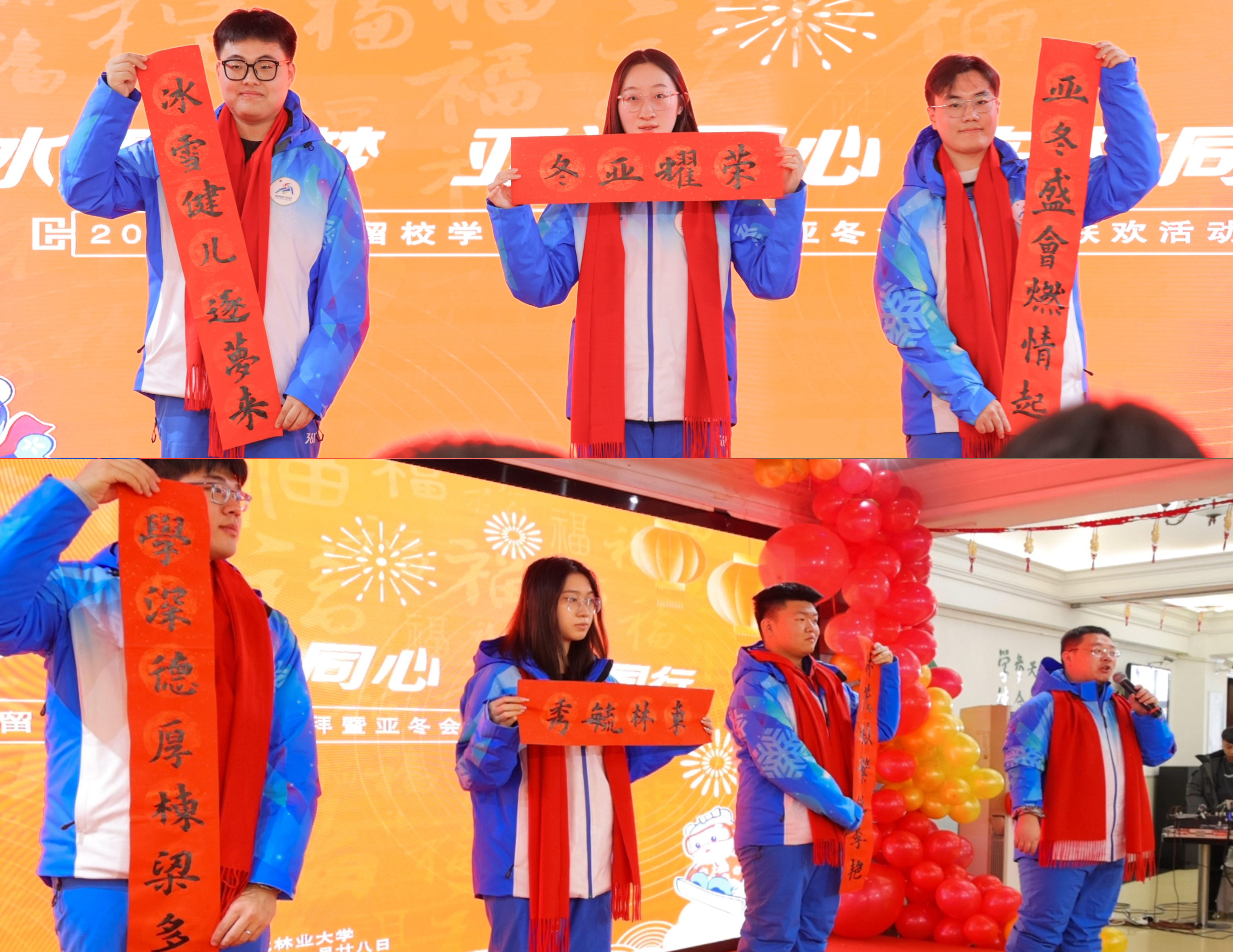 据悉,今年春节有300名亚冬会师生志愿者在校。为确保志愿者们在校度过一个幸福温暖的春节,学校为大家提供了春节期间的免费餐饮和新春大礼包,各学院也在春节期间通过各种方式为志愿者们送去祝福。