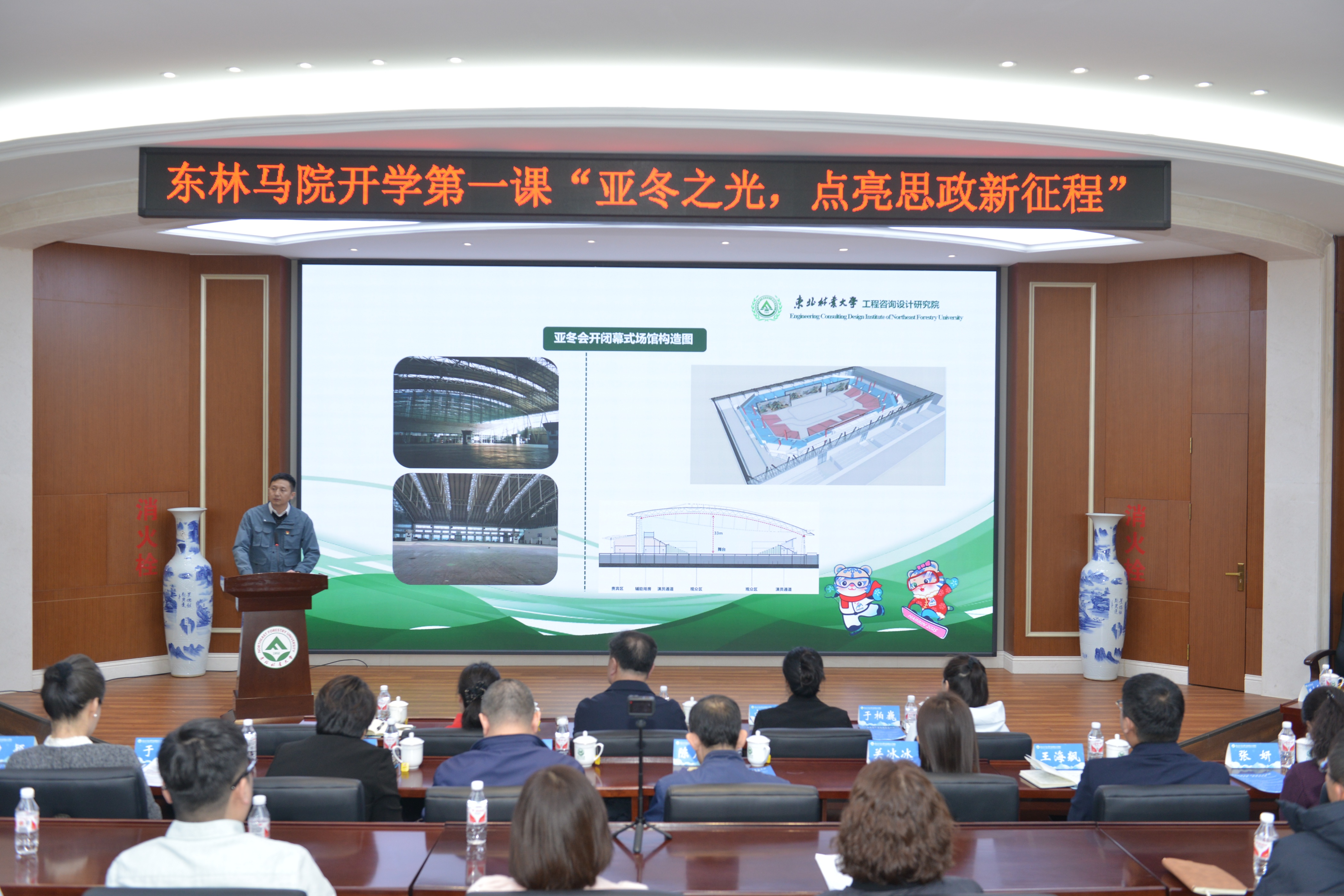 王海鹏从工程建设专业视角,分享了场馆改造背后的艰辛历程与卓越成就。为满足亚冬会高标准赛事需求,场馆改造项目面临时间紧迫、任务繁重、技术要求极高的诸多挑战。王海鹏及其团队充分发扬东林人高度的责任感与使命感,攻坚克难,在确保工程质量的前提下,如期完成场馆改造任务,为亚冬会的顺利举办筑牢坚实基础,向世界呈现了一场“极美、极燃、极暖” 的冰雪盛宴。他的讲述,让同学们清晰了解到一场精彩赛事背后强大的基础设施建设支撑,以及建设者们的责任担当。这使大家深刻体会到每个岗位在重大活动中的关键作用,也深切体悟到东林人的服务品质与担当精神,彰显了思政教育中责任意识与奉献精神的教育价值。