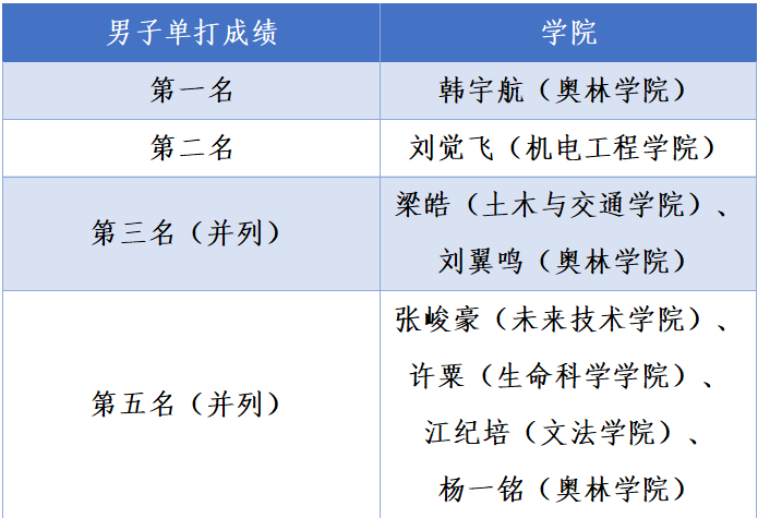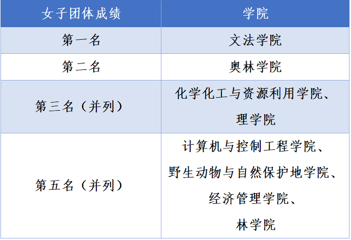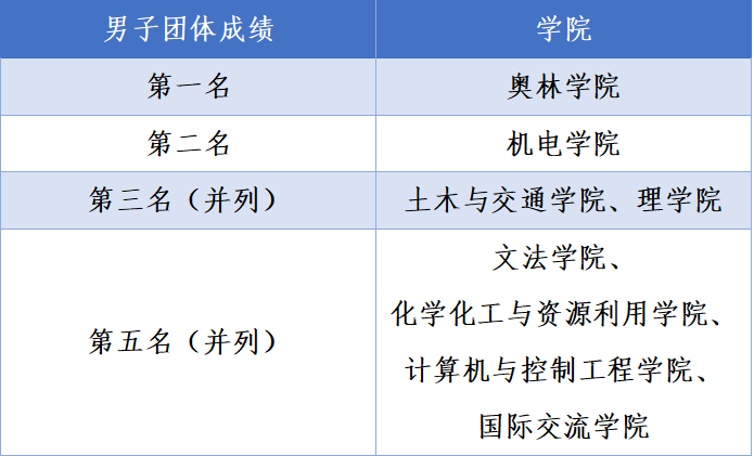 在团体赛中,奥林学院的队员们一路过关斩将,最终勇夺男子团体冠军;女子团体冠军则花落文法学院。