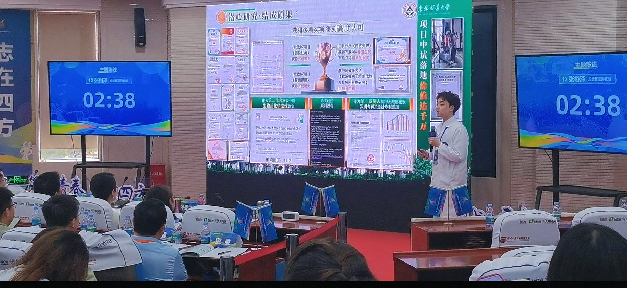 比赛过程中,我校张裕泽同学历经校赛、省赛的层层选拔后脱颖而出。在总决赛的舞台上,张裕泽通过“主题陈述、评委提问、天降实习offer三个环节,充分展现了以“无醛板材研发员”为职业目标的使命担当。