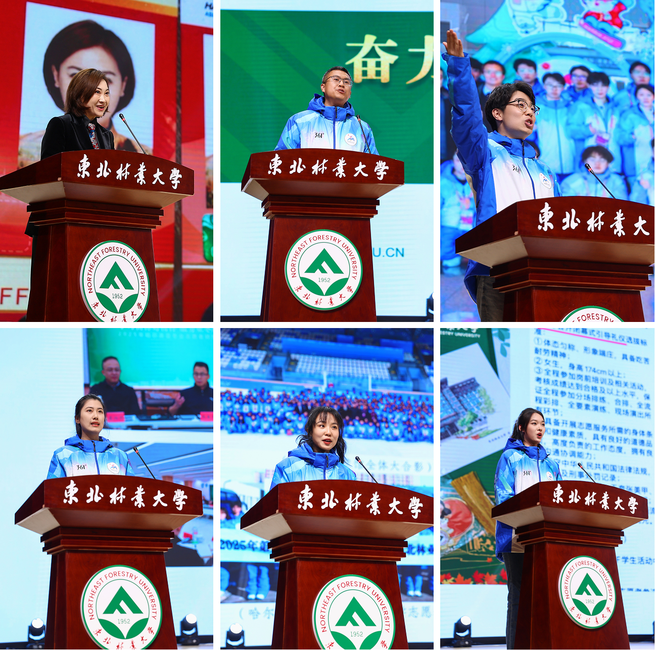 党委常委、副校长翟雪峰宣读了《关于成立东北林业大学第九届亚冬会青年师生宣讲团的决定》。车成全为学校第九届亚冬会青年师生宣讲团授旗。