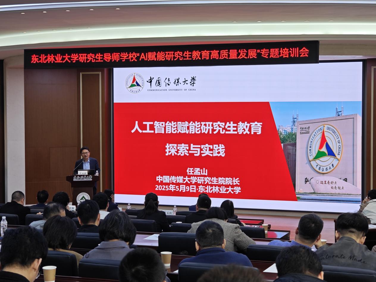 中国传媒大学研究生院院长任孟山教授作了题为《人工智能赋能研究生教育的探索与实践》的讲座。他从培养方案重构、课程体系升级、科研训练创新、创作实践深化、指导模式革新、教育管理数智化等方面,系统阐释了人工智能与研究生培养的融合路径,结合前沿案例,指出了构建适应智能时代的高层次人才培养新模式。