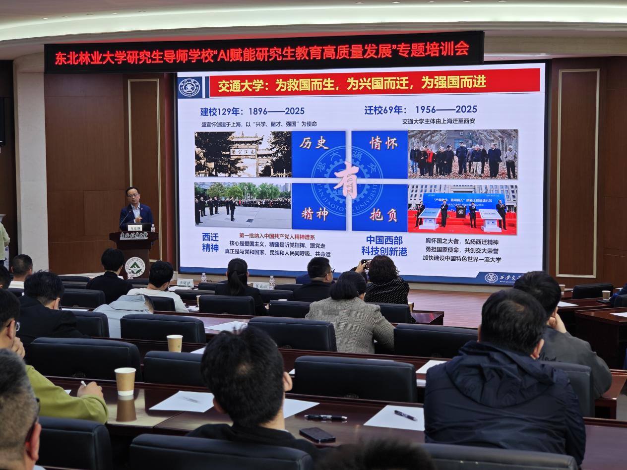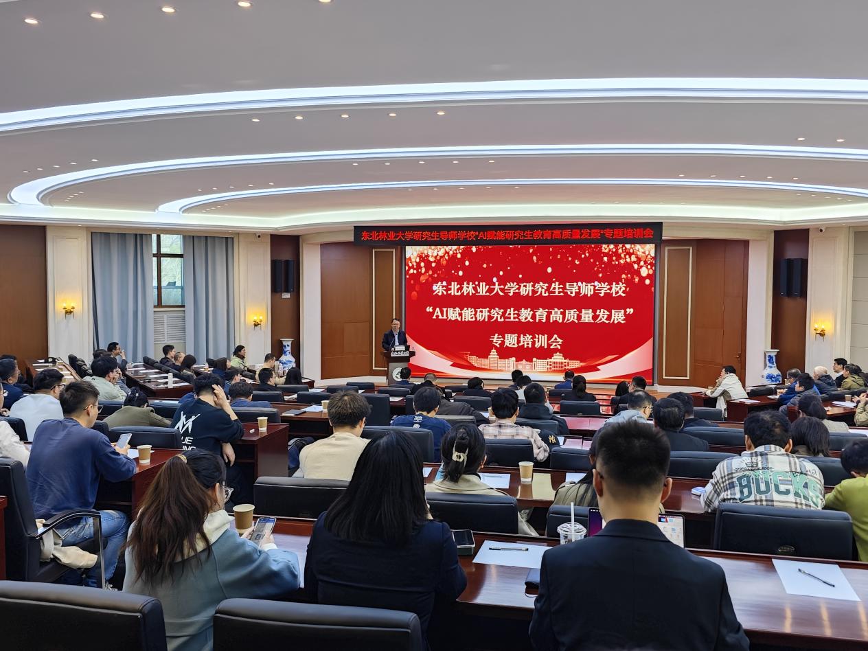 为贯彻落实《教育强国建设规划纲要(2024—2035年)》教育数字化的战略部署,提升我校研究生教育人工智能技术应用能力,提升教师数字素养,5月9日下午,学校在动保楼331会议厅举行研究生导师学校“AI赋能研究生教育高质量发展”专题培训会。党委常委、副校长李明泽主持培训会。各学院学术带头人、主管研究生工作副院长、新聘导师代表、研究生秘书、研究生院全体人员等200余人参加。
