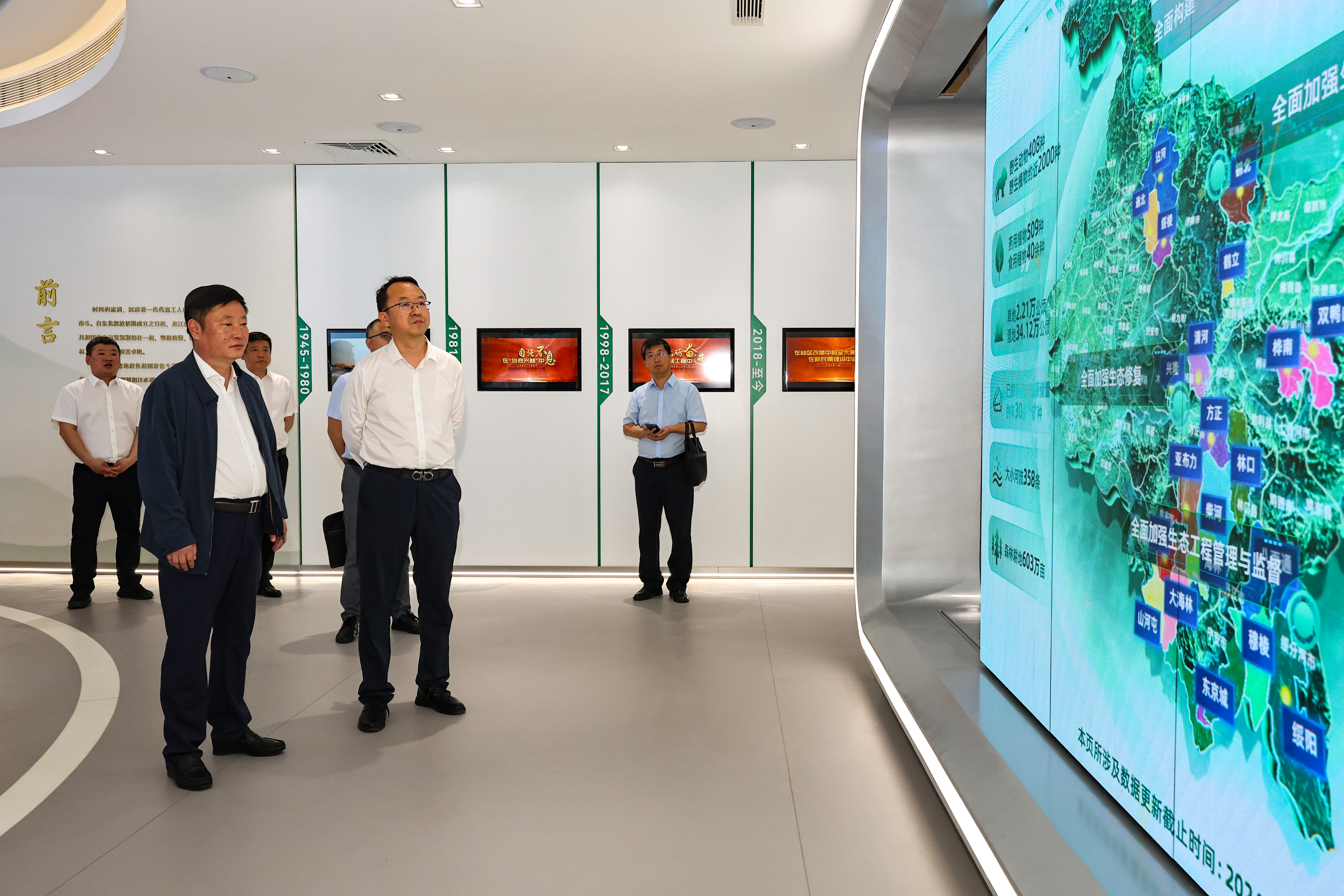 座谈会开始前,李明泽一行参观了龙江森工集团生态调度指挥中心、数字化体验中心和森林食品集团产品展销中心。学校本科生院、研究生院、科学技术研究院、林学院、生态学院等相关同志陪同调研。
