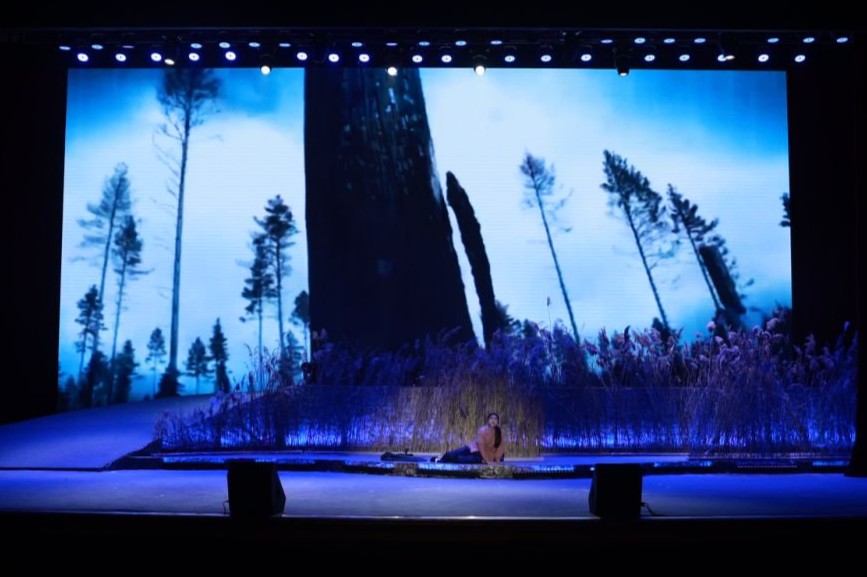 走过那条小河,你可曾听说……”随着空灵的《一个真实的故事》乐曲声响起,演出正式开始。舞台上,闪电与呐喊交织,“娟子”与丹顶鹤的身影在光影中若隐若现;舞台下,师生们为“娟子”省吃俭用啃硬馒头的坚韧品质落泪,为“大毛子”声嘶力竭的惨叫情景哽咽,为“娟子”在泥泞沼泽中缓缓倒下悲痛万分……精致的舞美设计将湿地生态与人文情怀完美呈现,金色的灯光与群鹤飞舞的场景交相辉映,扣人心弦的剧情与演员的精湛演绎深度融合,现场观众沉浸其中、心随剧动,共同在这堂生动的思政大课中受感动、被感染。