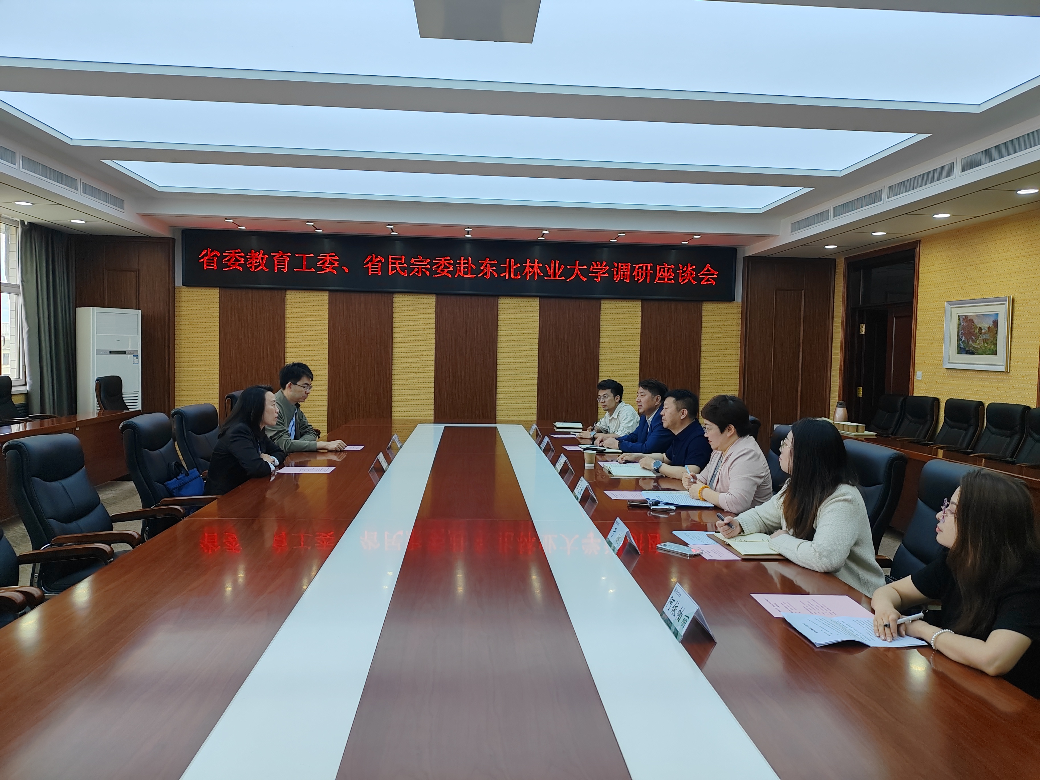 翟雪峰代表学校对艾萌、吴鹏一行来校调研并指导工作表示欢迎,对省委教育工委、省民宗委长期以来对东北林业大学的关心和支持表示感谢。他表示,学校党委将持续深入学习贯彻习近平总书记关于加强和改进民族工作的重要思想和中央民族工作会议精神,充分发挥铸牢中华民族共同体意识研究基地和教育实践基地作用,深入推进民族团结进步教育,全力做好学校民族工作。