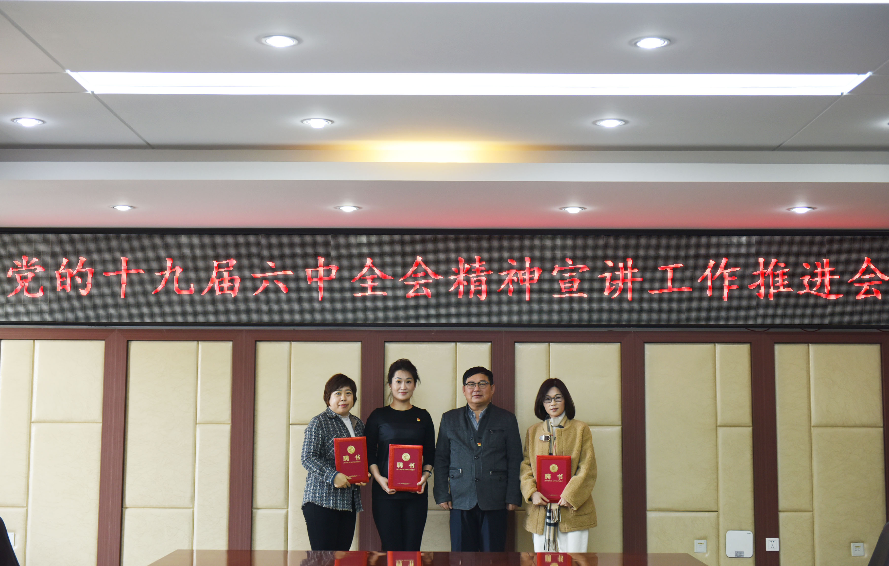 2021年12月13日,学校召开党的十九届六中全会精神宣讲工作推进会。党委书记张志坤为三位成员颁发聘书