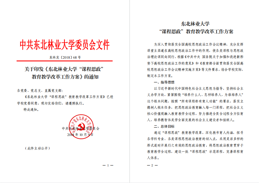 除了抓好思政课建设外,学校还深入推进课程思政建设,成立以党委书记、校长为组长的课程思政建设工作领导小组,出台《东北林业大学“课程思政”教育教学改革工作方案》,深入挖掘各类课程中的思政元素,构建了涵盖理想信念、社会主义核心价值观、中华优秀传统文化等多方面的课程思政体系。在2022版本科专业人才培养方案中,持续强化思政育人与特色培养的互融联动,设置了彰显学校特色的“5+X+1”思政元素矩阵。出版《东北林业大学课程思政教育教学改革典型案例》,引导广大教师以心育心、以德育德。教师的思政教育意识和能力明显提升,课程思政教学方法不断创新,教学效果显著增强。学生的思想道德素质和政治素养得到有效提升。