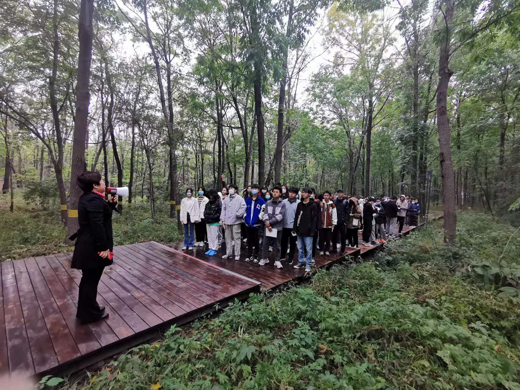 学生在校园林场上思政课
