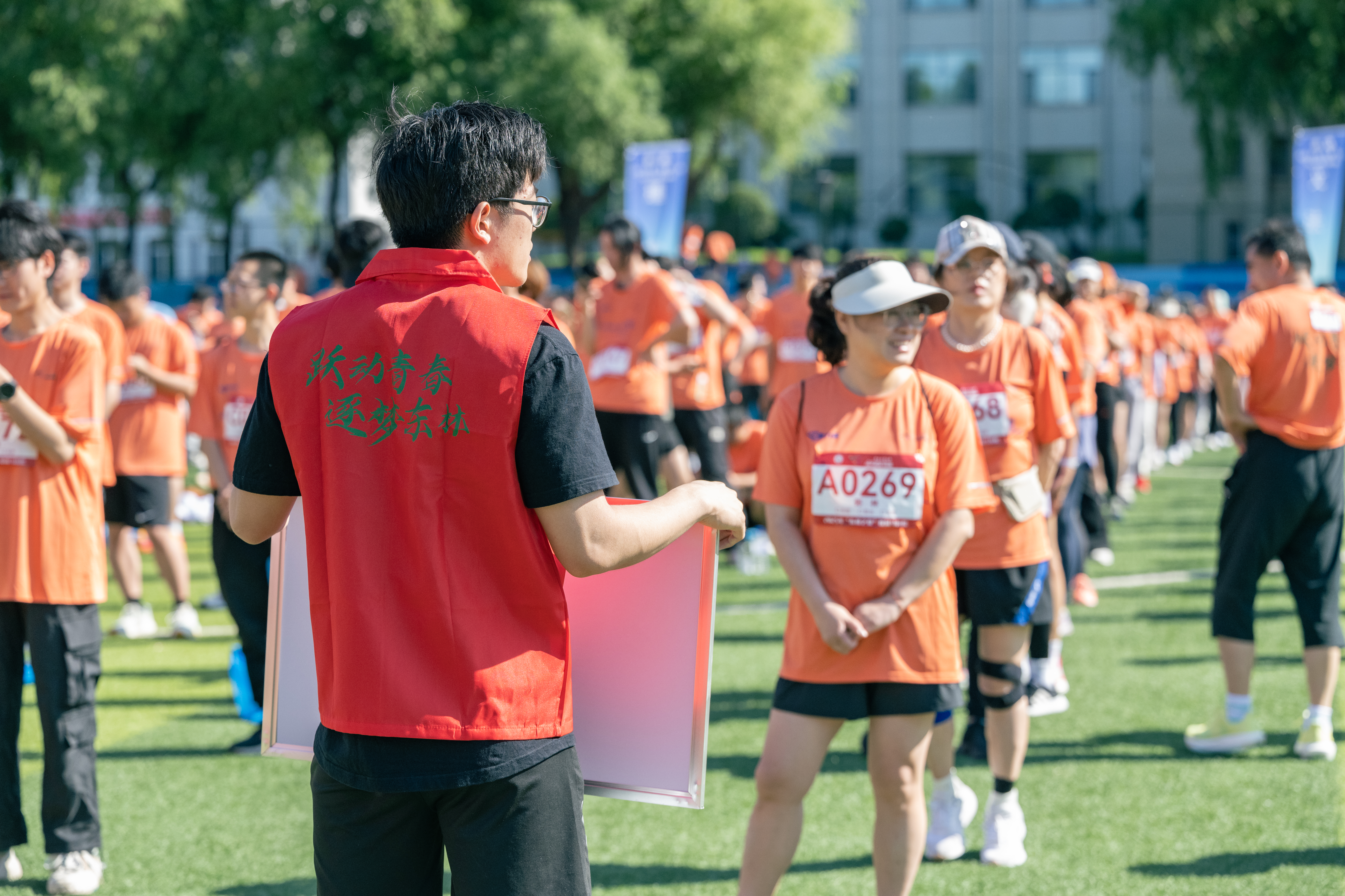 为确保赛事高效有序开展,体育部组织30余名教师与90余名学生运动员,全面统筹赛事筹备工作;校团委招募百余名学生志愿者,负责赛道指挥、奖牌发放等任务;保卫处部署50名安保人员,提前规划车辆停放、全程维护现场秩序;校医院组建10人医疗救助专班,搭配10名急救跑者,构筑应急保障防线;后勤保障部全方位统筹电力供应、环境卫生等后勤服务。