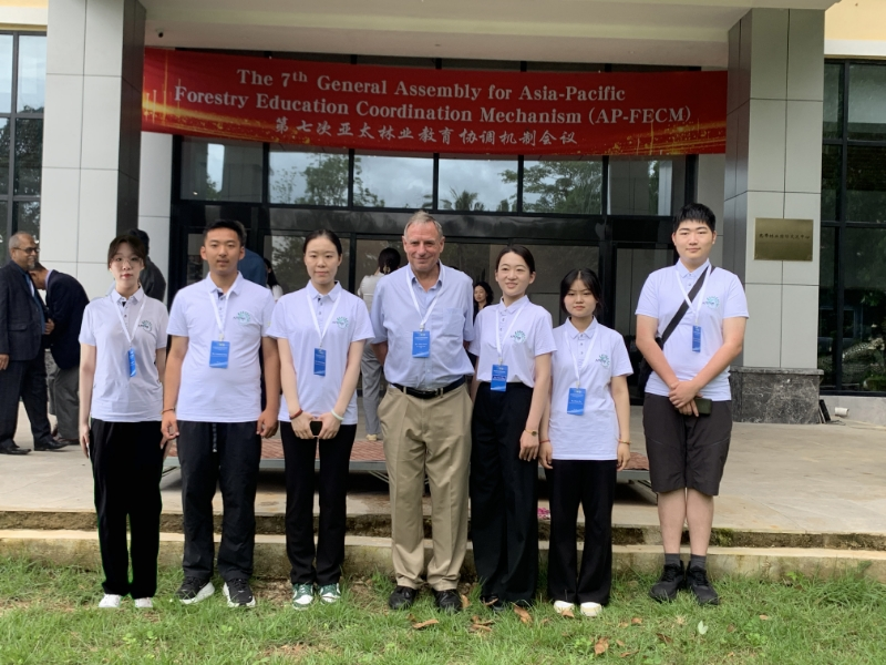 亚太林业教育协调机制主席John Innes同东林学生志愿者合影