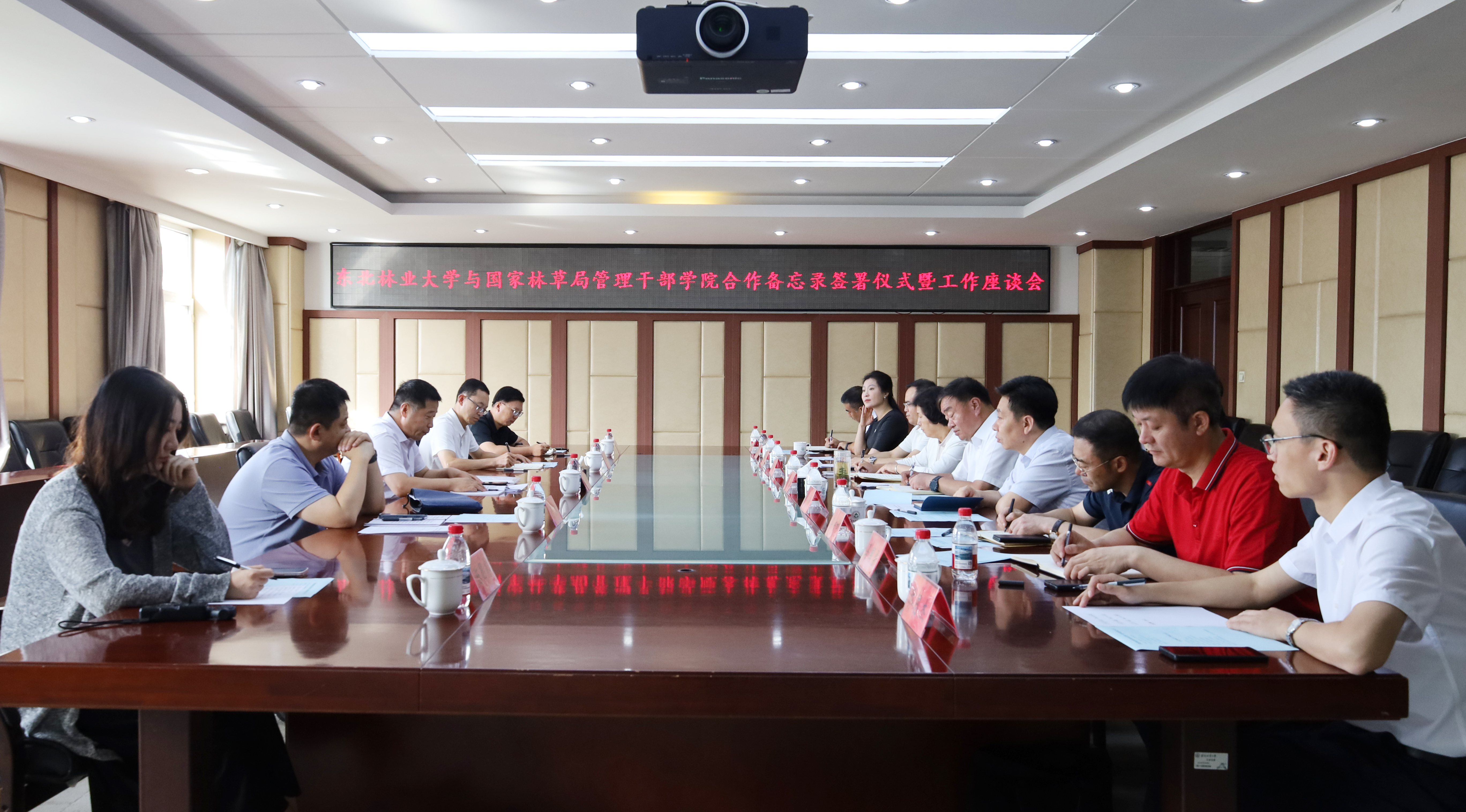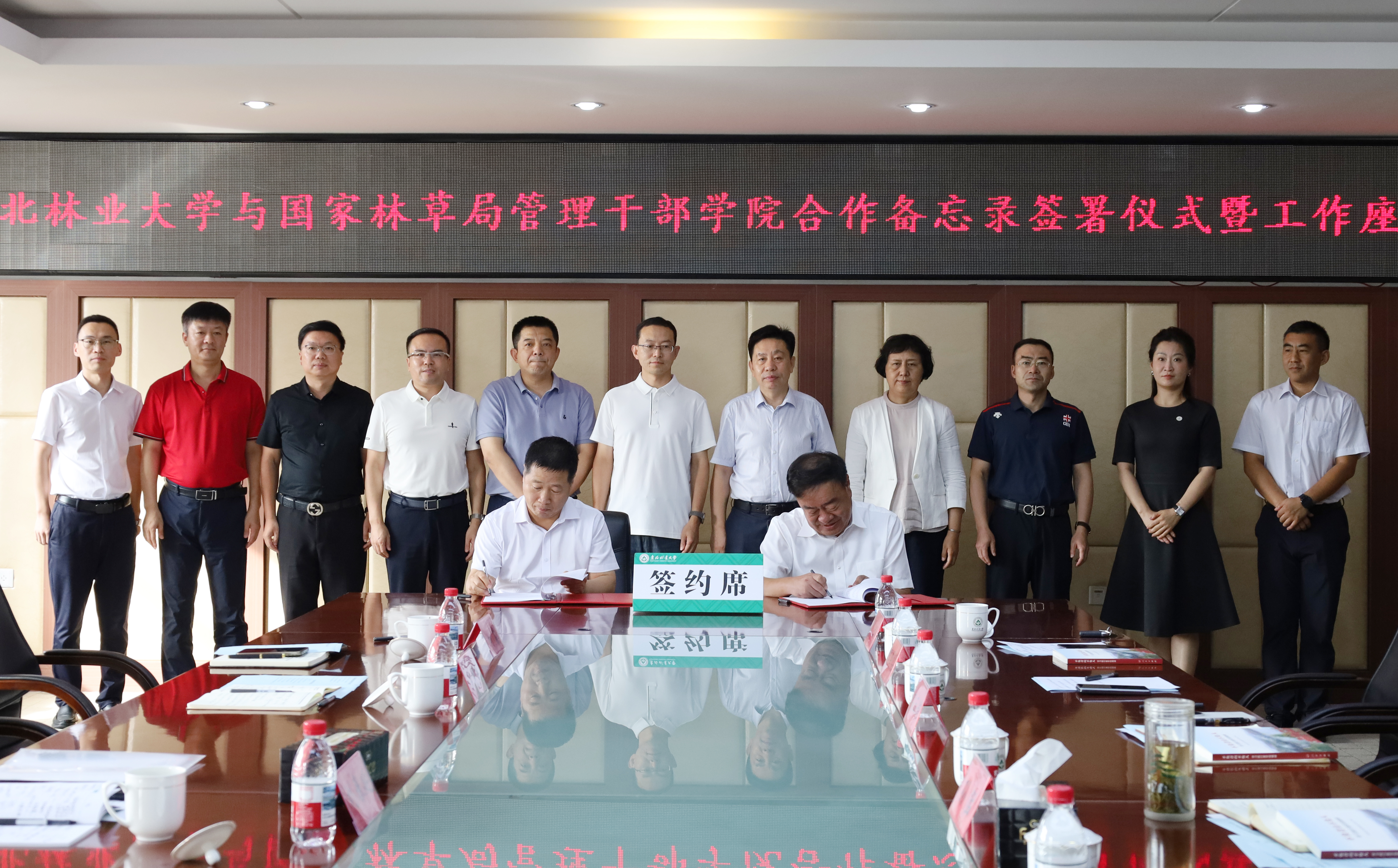 在与会人员的共同见证下,双方代表正式签署了《国家林业和草原局管理干部学院和东北林业大学开展教育培训合作备忘录》。备忘录明确,双方将本着“优势互补、资源共享、互利共赢、共同发展”的原则,在深化教育培训合作、协调科学研究资源、拓展学历教育合作、谋划其他领域合作等方面,建立全方位、多领域、深层次的战略合作关系。