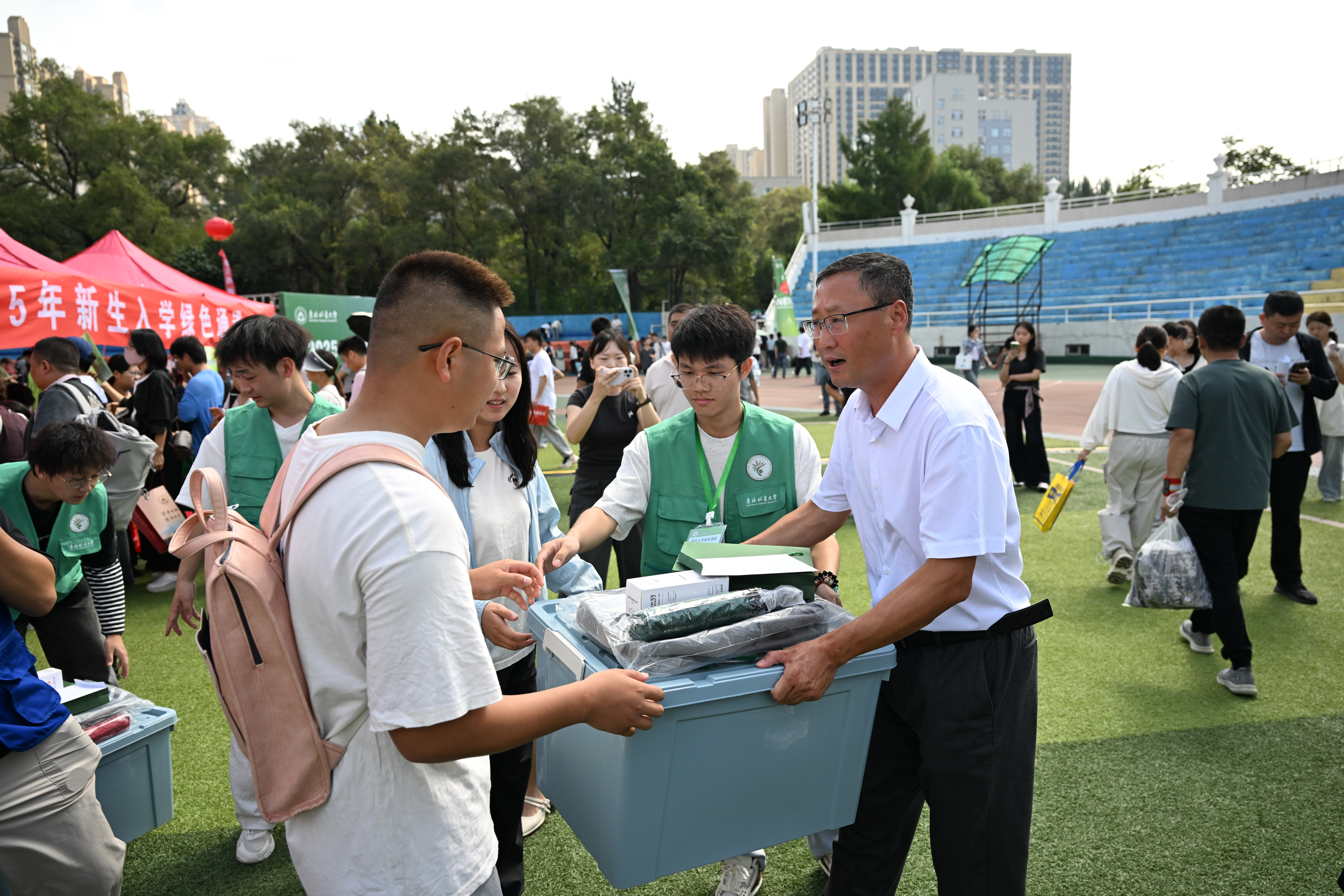 八月的哈尔滨,褪去了盛夏的燥热,处处尽显清凉。8月30日,校园迎来了2025级新生报到的首日——来自五湖四海的青年学子选择东林,在这里开启人生的崭新篇章。当天上午,学校党委书记孙猛、校长宋文龙、党委副书记翟雪峰深入迎新现场,实地察看、了解新生入学情况,慰问一线工作人员,并与新生及家长亲切交流,传递东林温度的同时,为新生的“东林初体验”注入满满关怀。