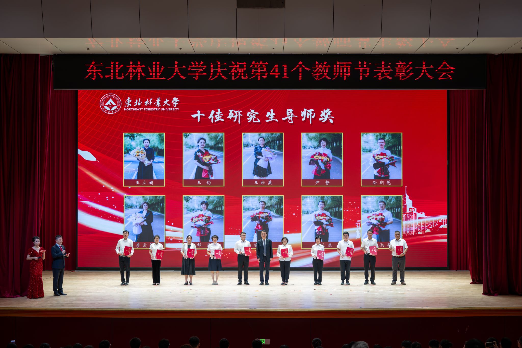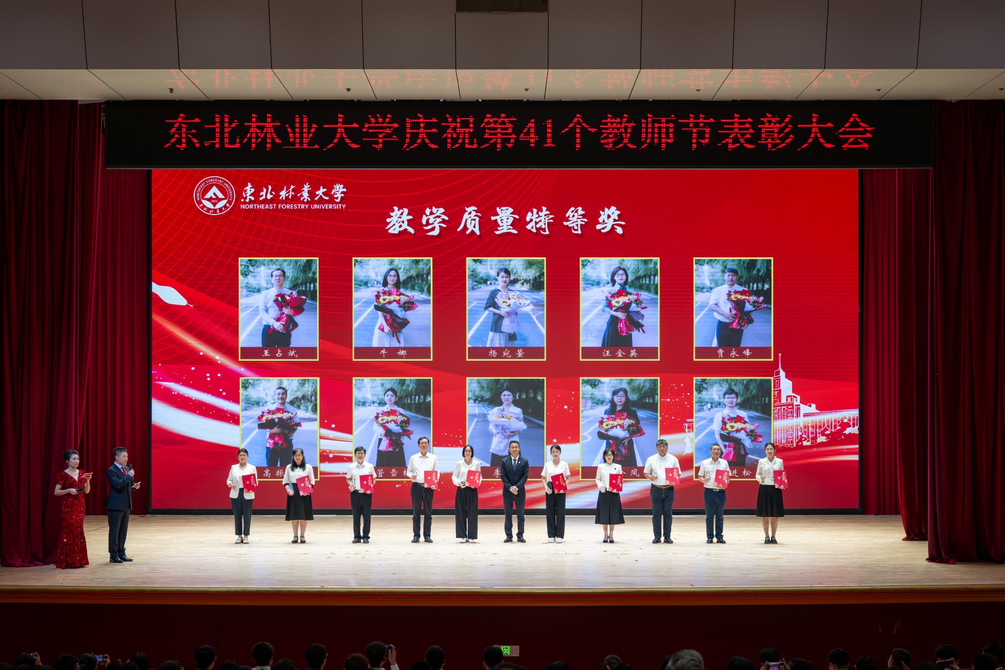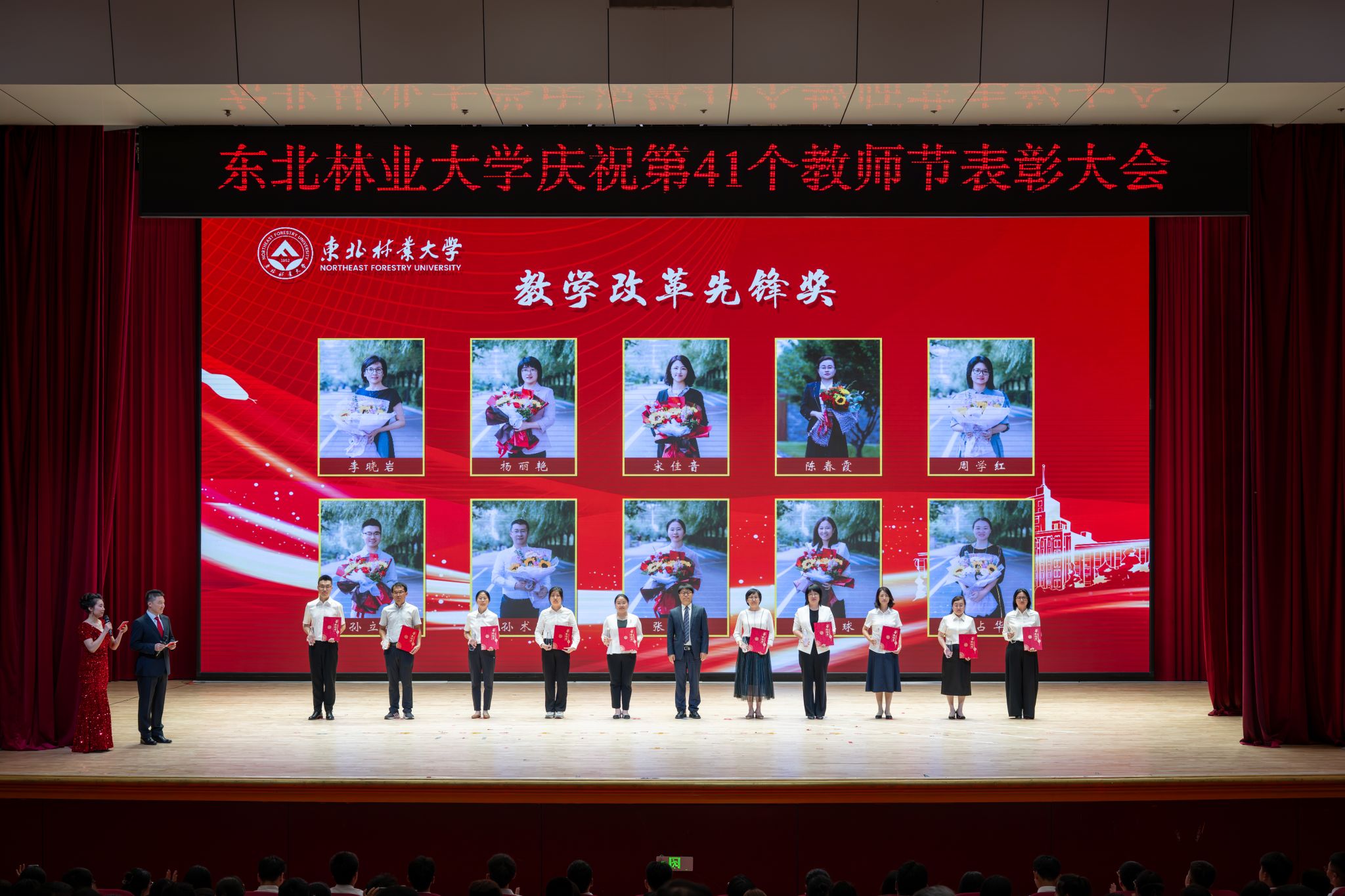 颁奖仪式上,李坚院士,校长宋文龙,党委常委、副校长刘守新,党委副书记翟雪峰,党委常委、副校长于海鹏,党委常委、副校长李明泽,党委常委、副校长张春雷,党委常委、校长助理、林学院院长孙龙,分别为“师德师风建设先进集体”、“师德先进个人”、“乡村振兴先进个人”和“乡村振兴先进团队”、“优秀研究生‘五好’导学团队”、“优秀基层教学组织奖”、“十佳本科生导师”和“十佳研究生导师”、“教学质量特等奖”、“教学改革先锋奖”等荣誉的获得者及获奖代表颁奖。