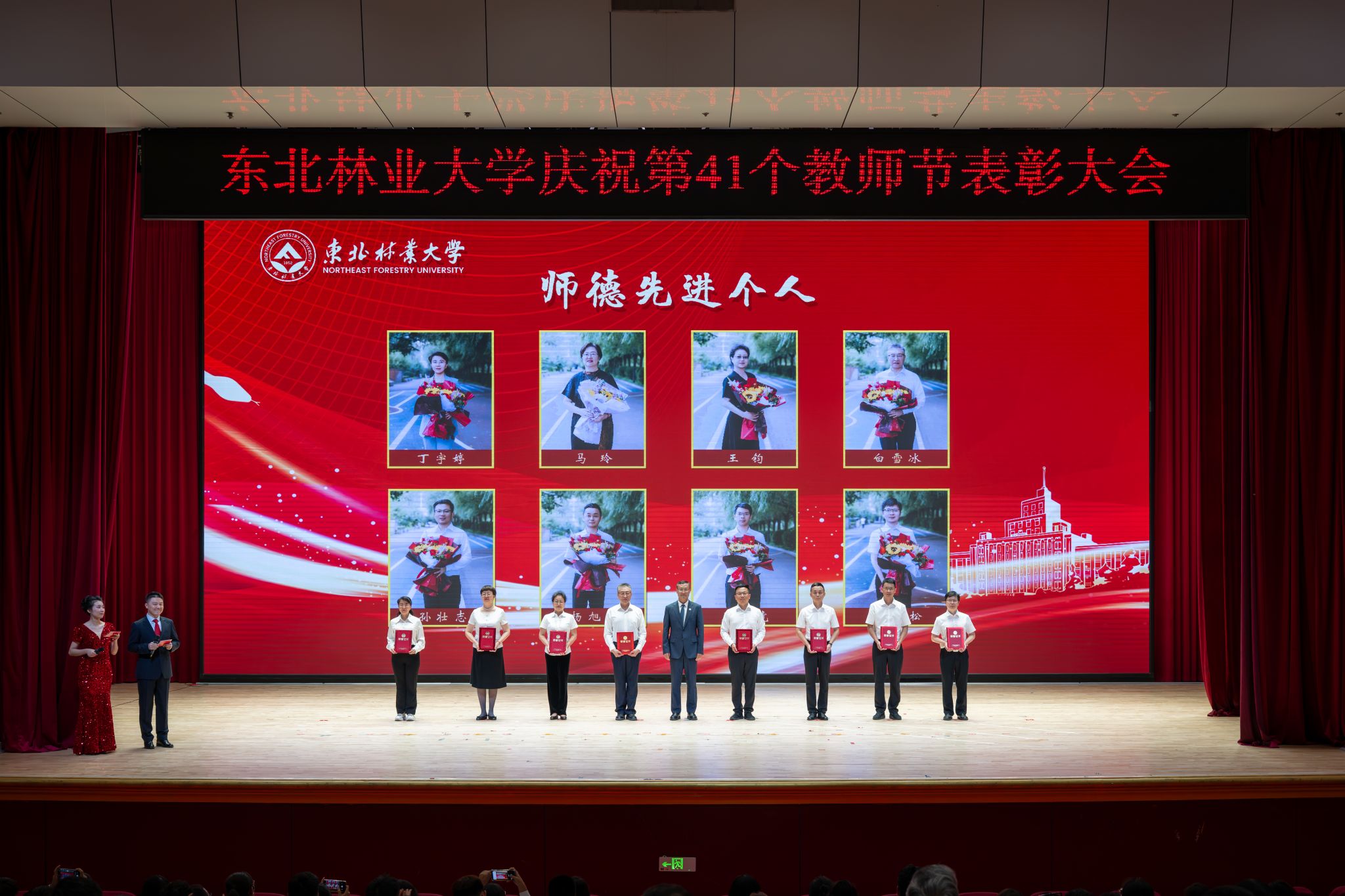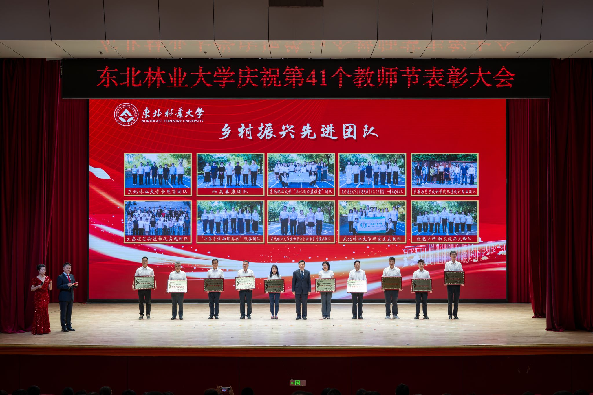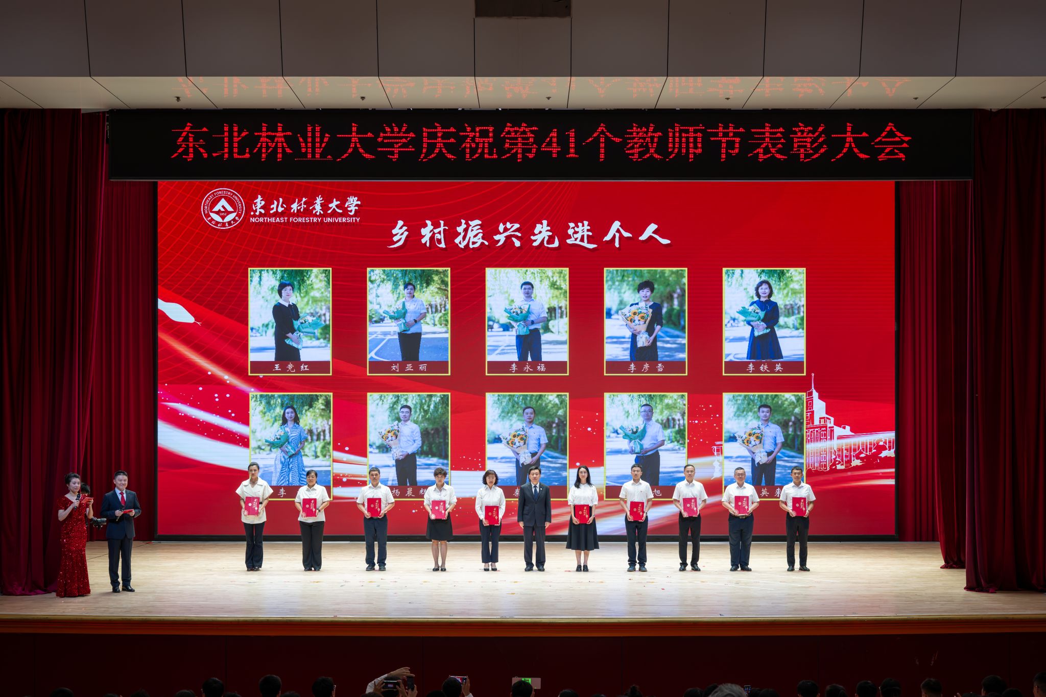 颁奖仪式上,李坚院士,校长宋文龙,党委常委、副校长刘守新,党委副书记翟雪峰,党委常委、副校长于海鹏,党委常委、副校长李明泽,党委常委、副校长张春雷,党委常委、校长助理、林学院院长孙龙,分别为“师德师风建设先进集体”、“师德先进个人”、“乡村振兴先进个人”和“乡村振兴先进团队”、“优秀研究生‘五好’导学团队”、“优秀基层教学组织奖”、“十佳本科生导师”和“十佳研究生导师”、“教学质量特等奖”、“教学改革先锋奖”等荣誉的获得者及获奖代表颁奖。