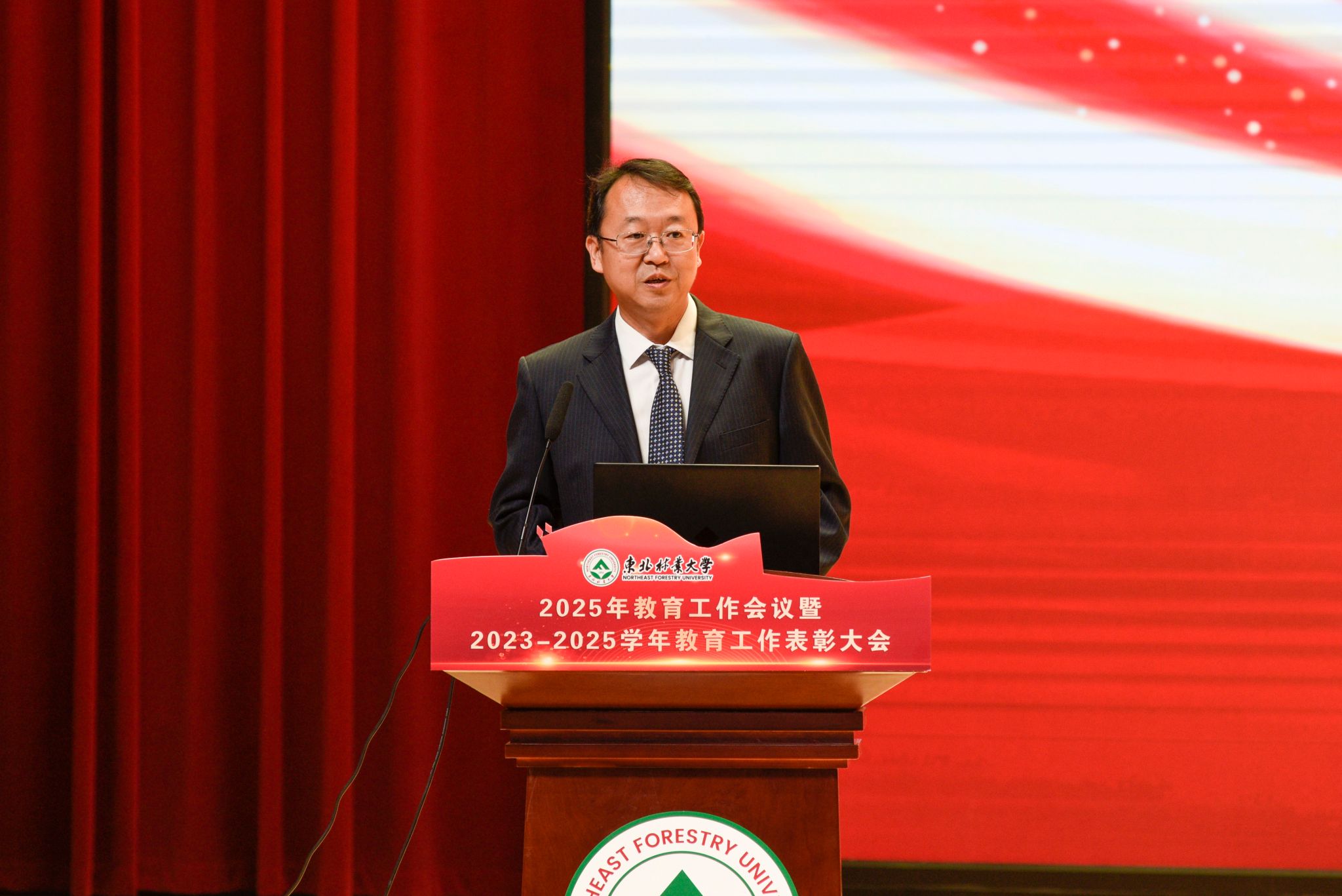 李明泽以《优布局 强特色 育新人》为题,作了学校教育工作报告。报告回顾了过去两年学校在教育教学改革方面取得的显著成就,谋划了重点推进落实任务。报告指出,未来学校将着力开展需求引领学科专业优化行动、科产协同培养模式改革行动、提质增效教学资源进阶行动、以林育人品牌文化升级行动,进一步提升学科整体水平和贡献度、全面提升人才自主培养质量。