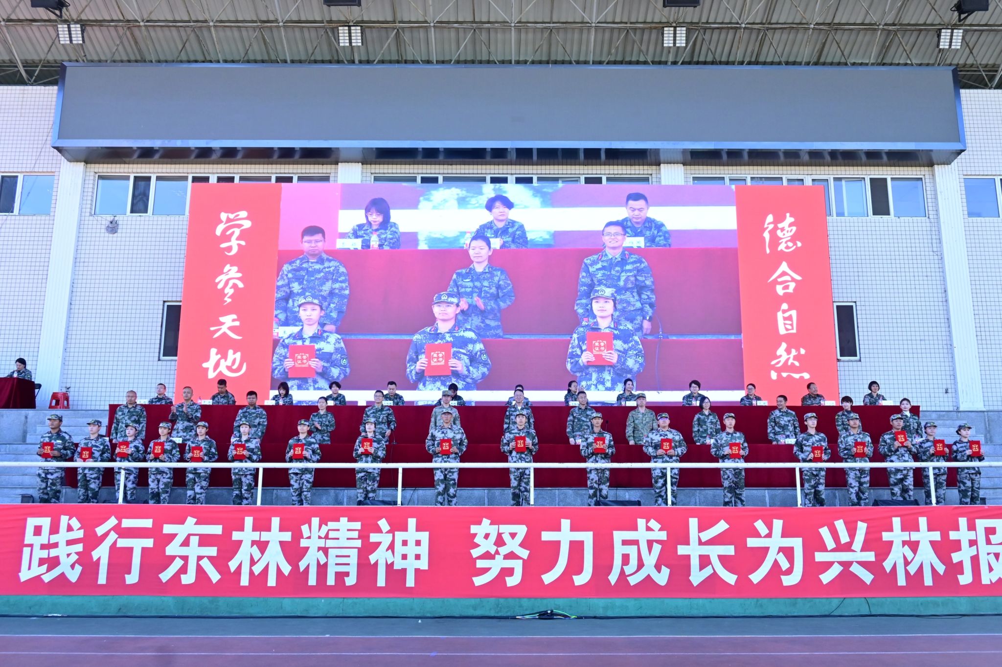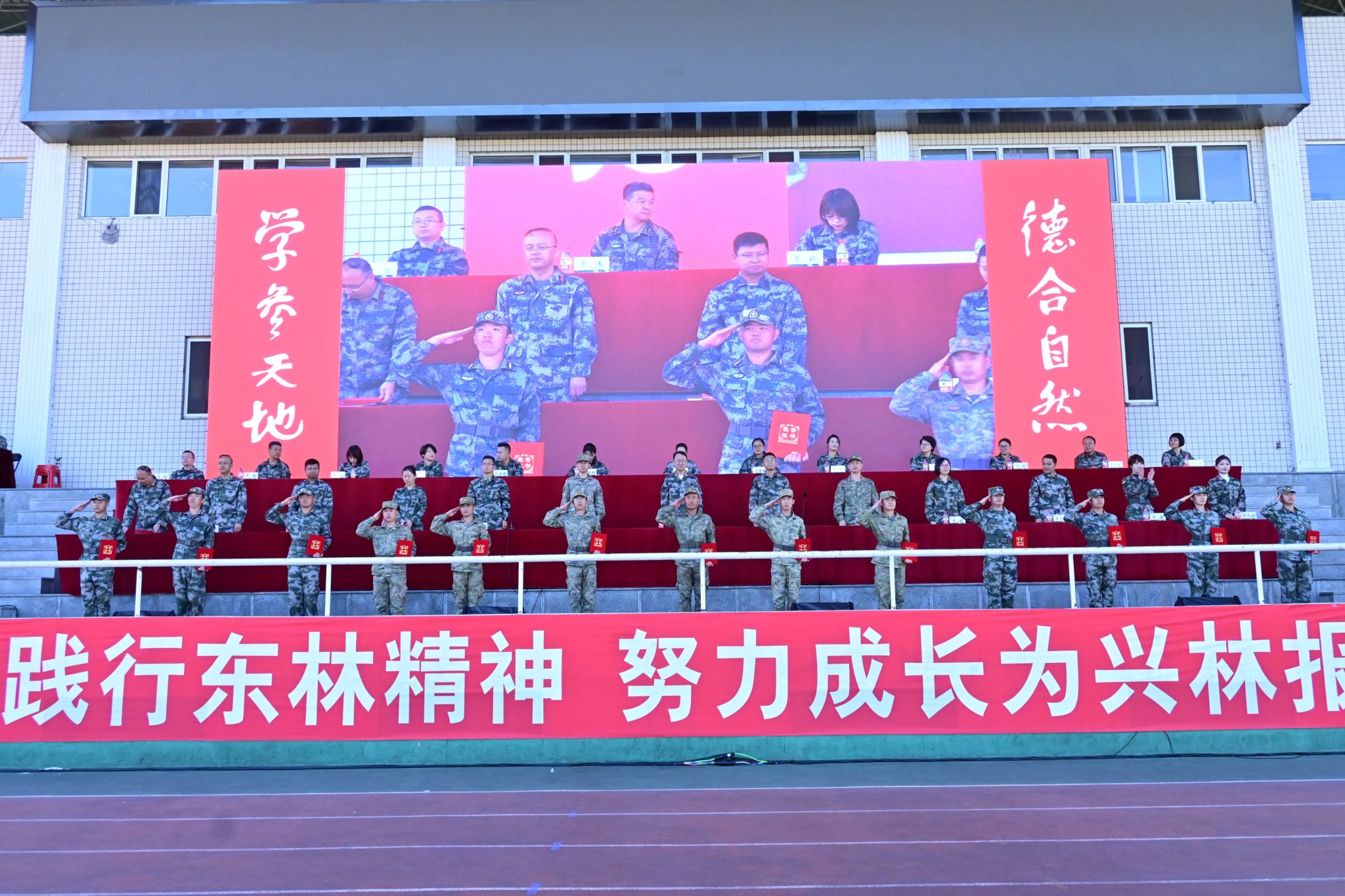 张春雷作总结讲话,他向全体2025级新同学提出三点嘱托:一是胸怀“军人般的担当”,厚植家国情怀,立志生态报国。二是永葆“军人般的意志”,敢于直面困难,实现自我价值。三是传承“军人般的血脉”,赓续东林精神,薪火接力前行。