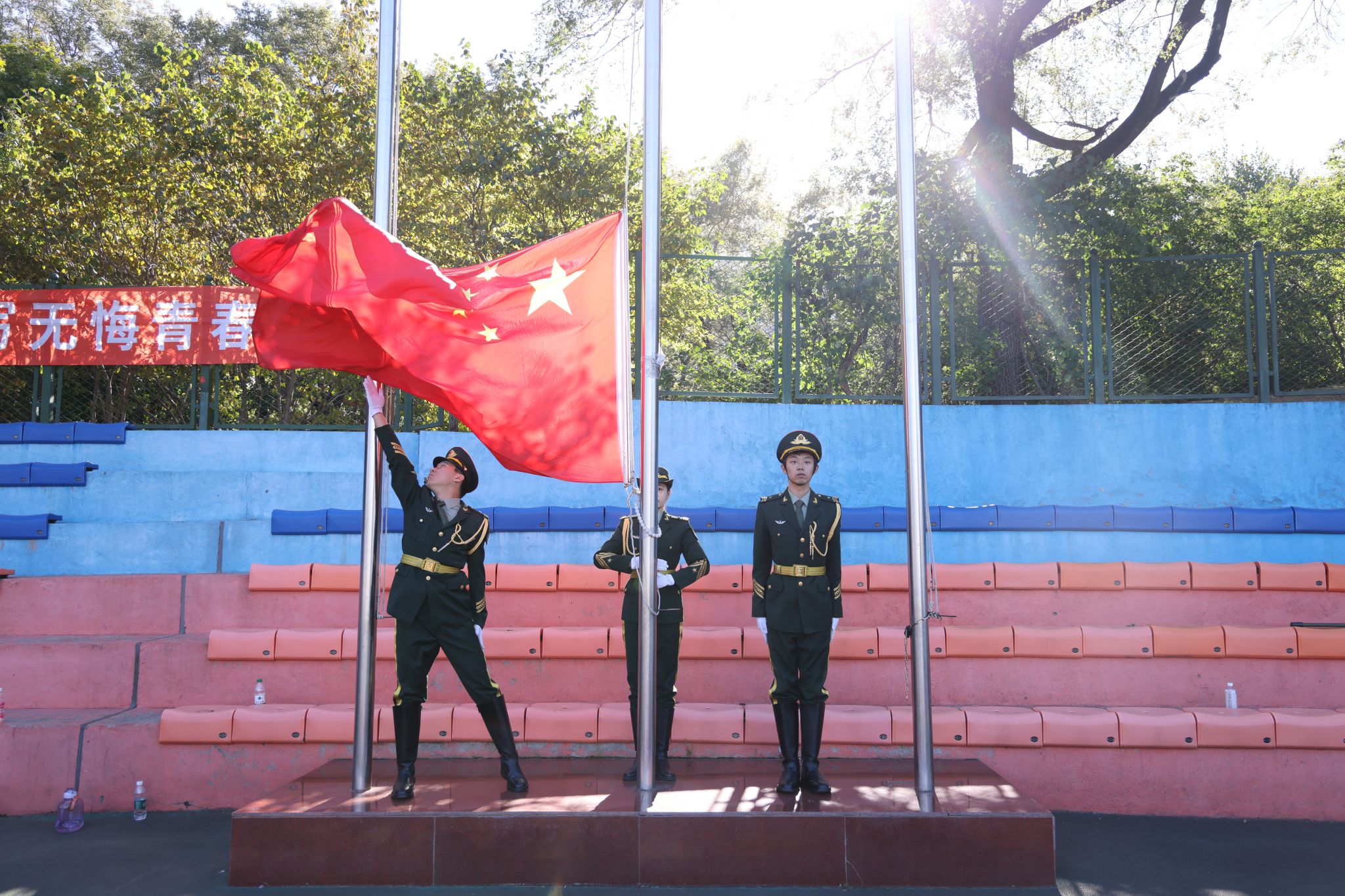 伴随着雄壮的国歌声,五星红旗冉冉升起。