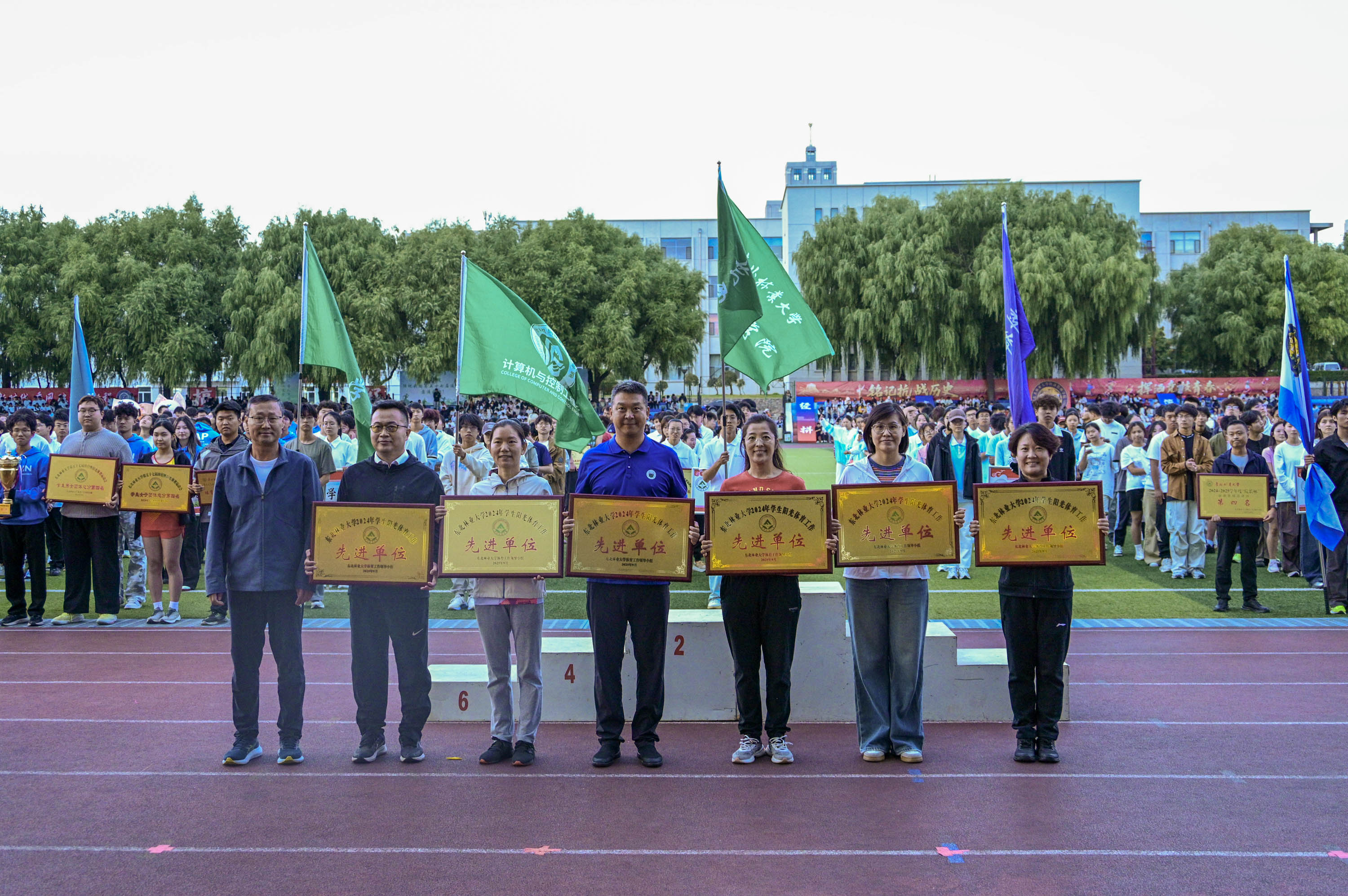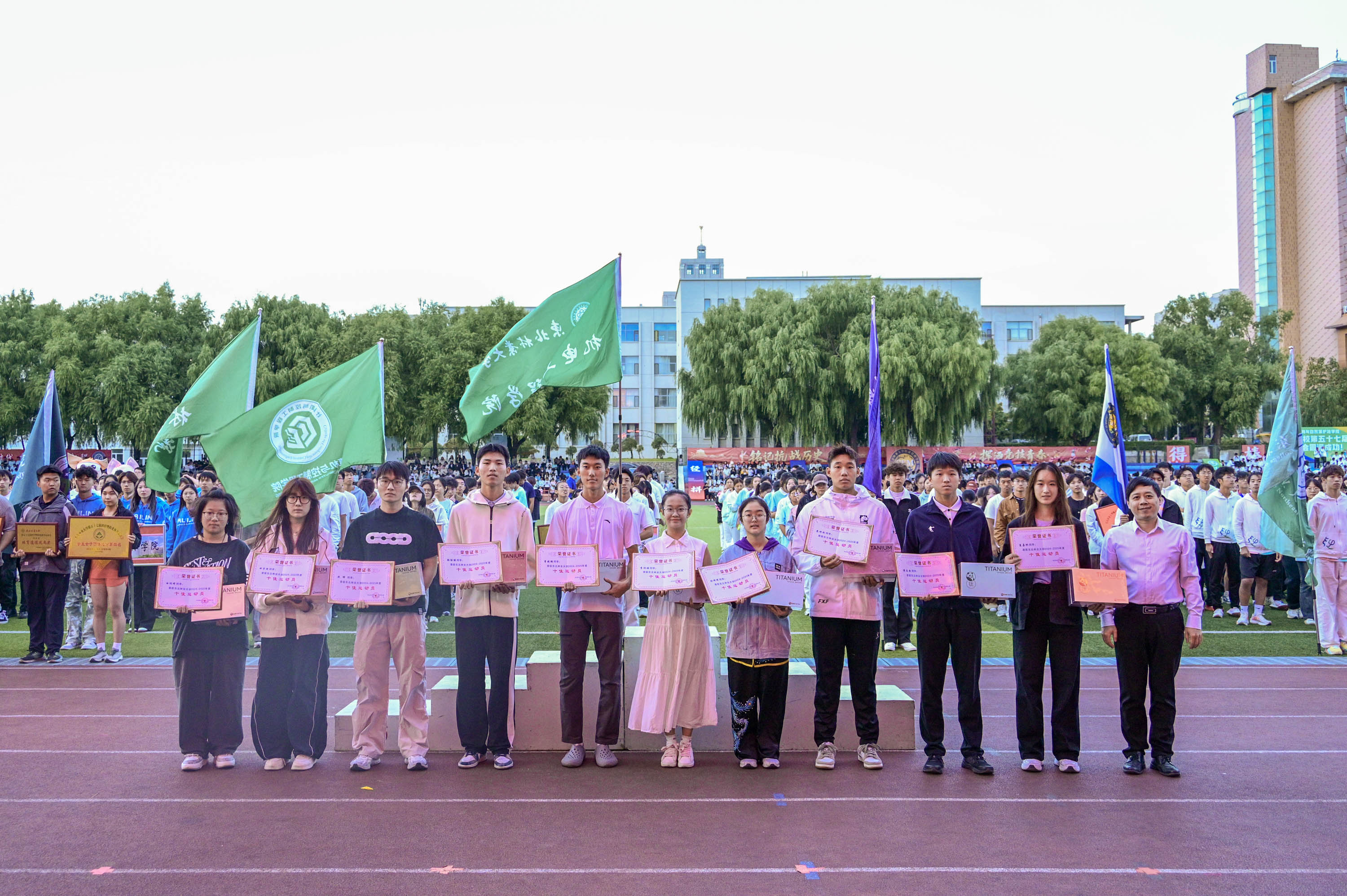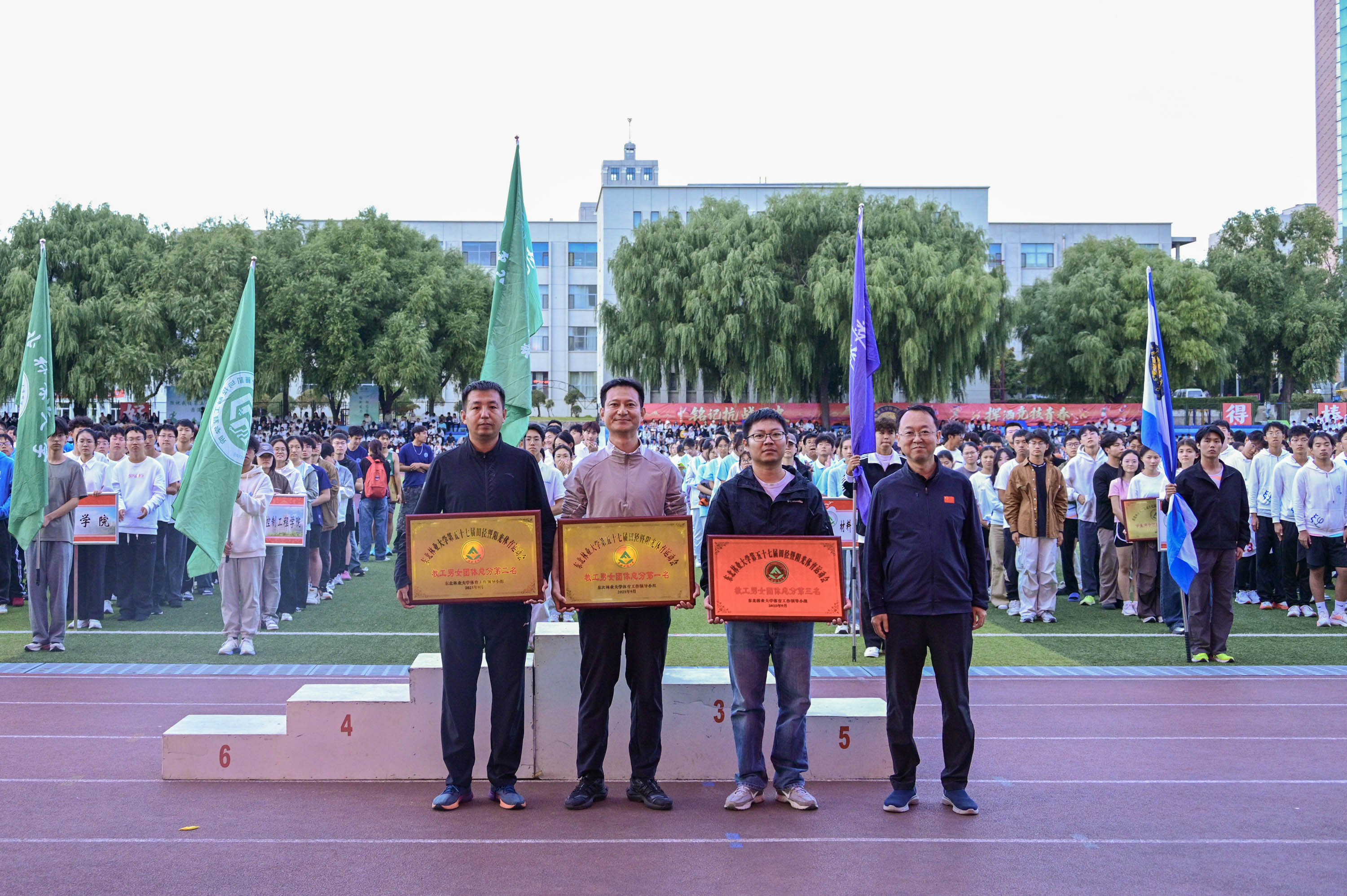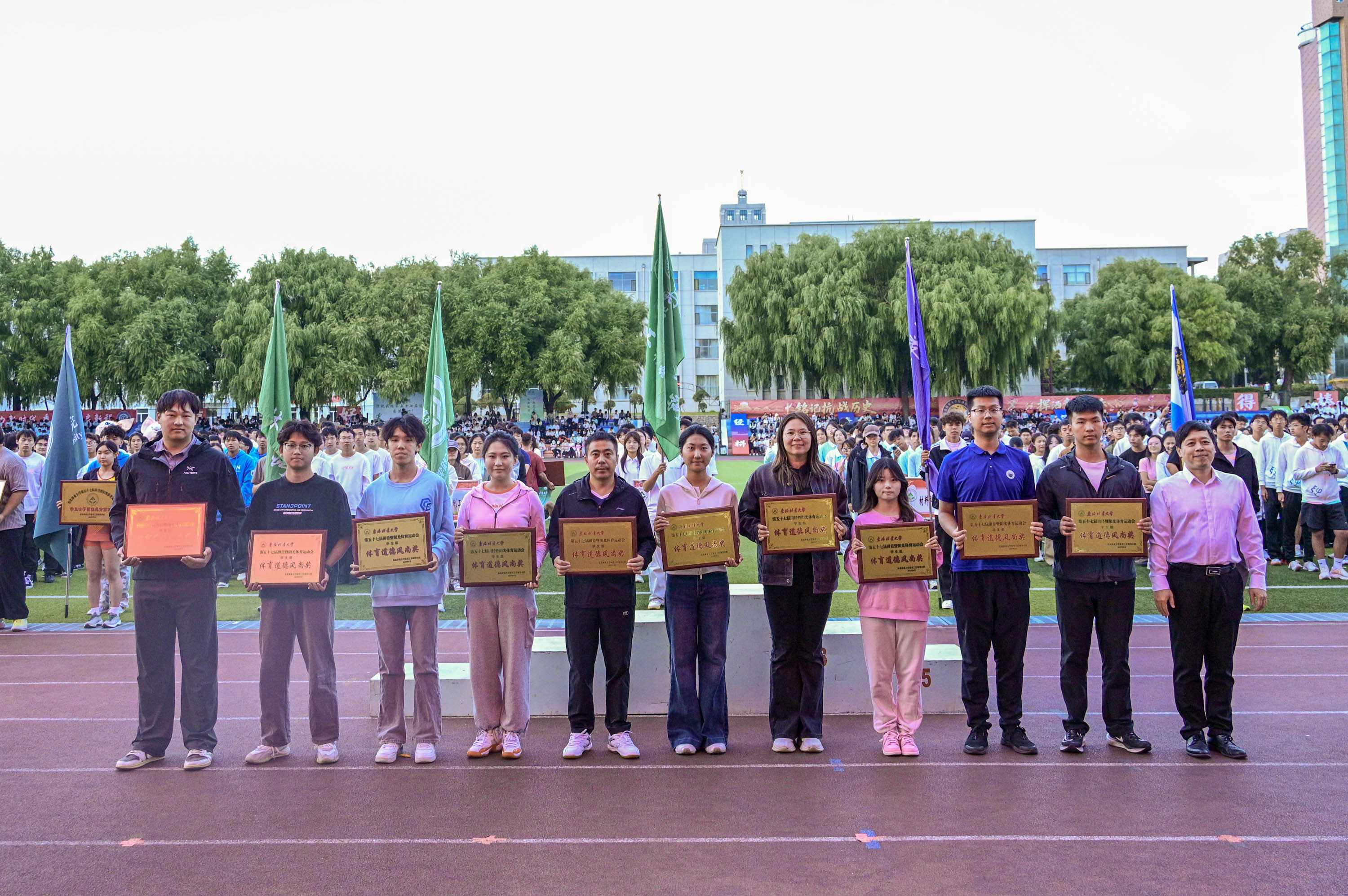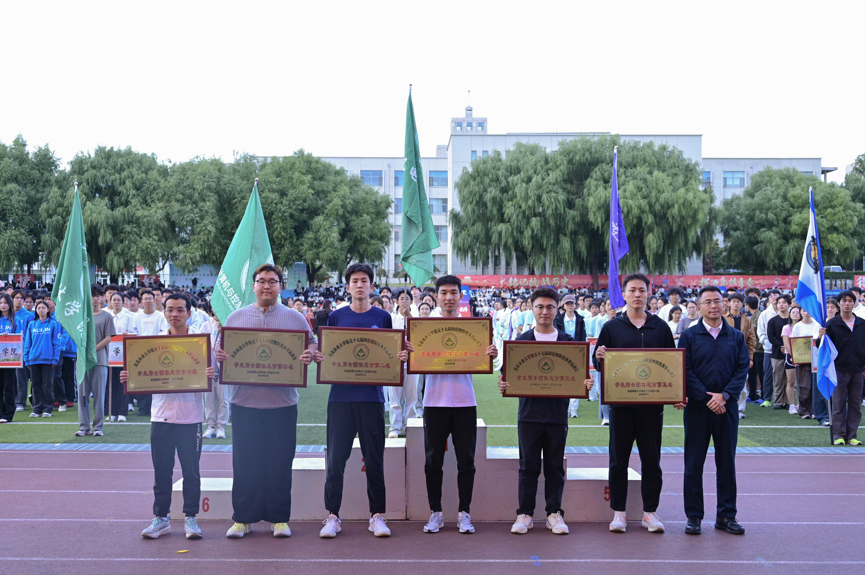 校领导宋文龙、于海鹏、李明泽、张春雷出席在田径场举行的闭幕式。体育部主任关大鹏主持闭幕式。