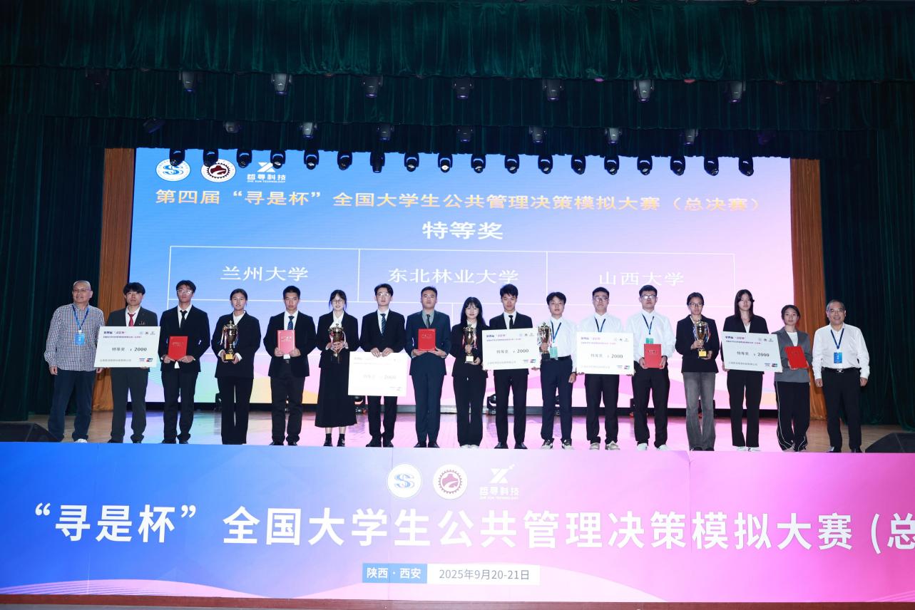 9月19日至21日,第四届“寻是杯”全国大学生公共管理决策模拟大赛(总决赛)在西安交通大学兴庆校区举行。由我校文法学院教师王雪梅、张梦时指导,2023级政治学与行政学专业本科生徐济尘、孙桐和张承毅三名同学组成的代表队,在比赛中荣获特等奖,两位指导老师获评优秀指导教师奖。