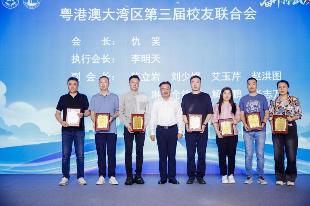 孙猛宣布了粤港澳大湾区第三届校友联合会荣誉会长、会长、执行会长、副会长、秘书长、副秘书长名单,并进行授牌。