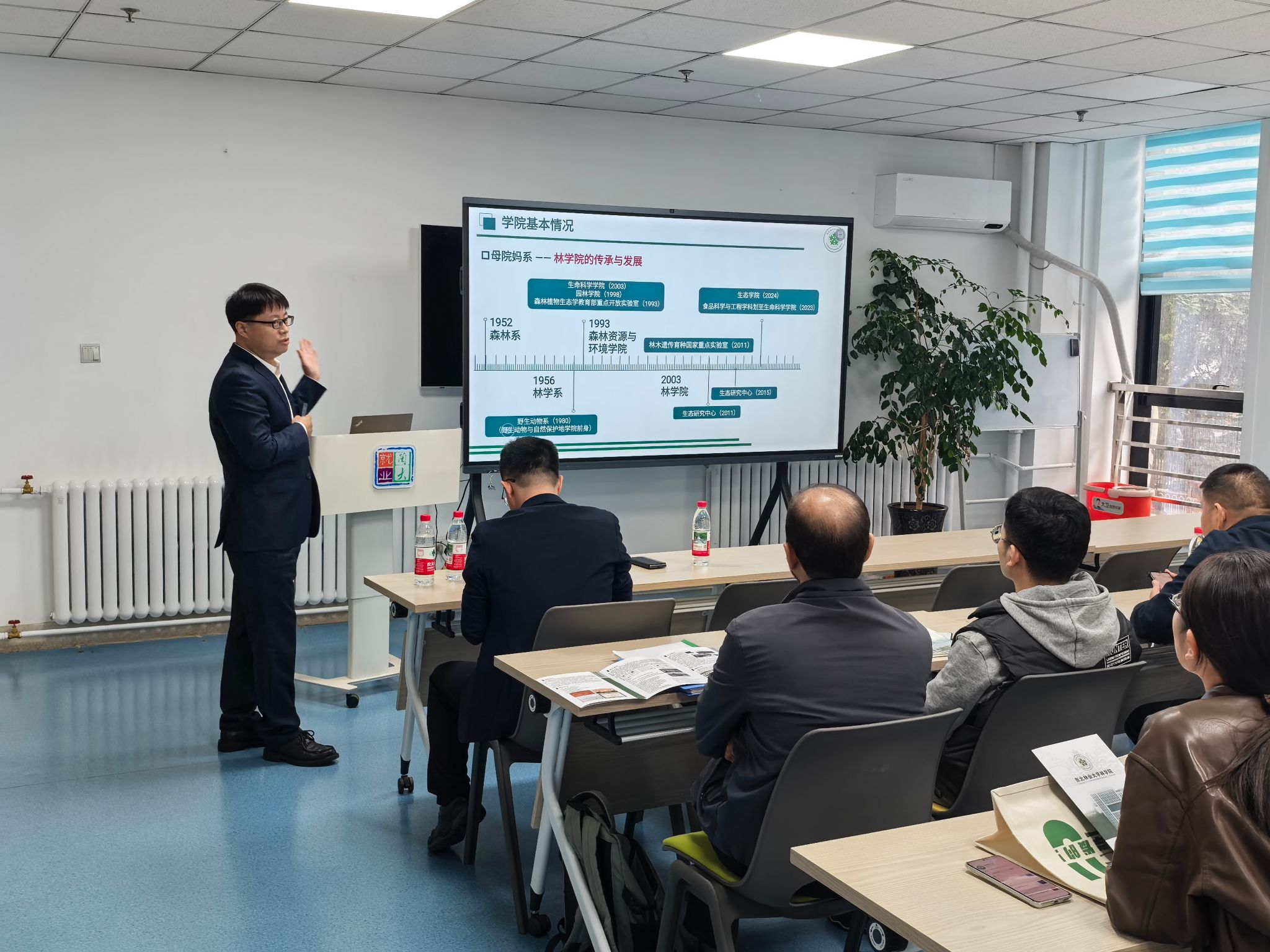 学校党委常委、校长助理、林学院党委书记孙龙,生态学院院长周旭辉,园林学院党委书记赵新勇,材料科学与工程学院韦双颖教授,分别围绕本学院的学科平台特色优势、科学研究方向、团队建设及岗位需求等方面内容开展宣讲,并现场解答了到场青年学者们的咨询问题。