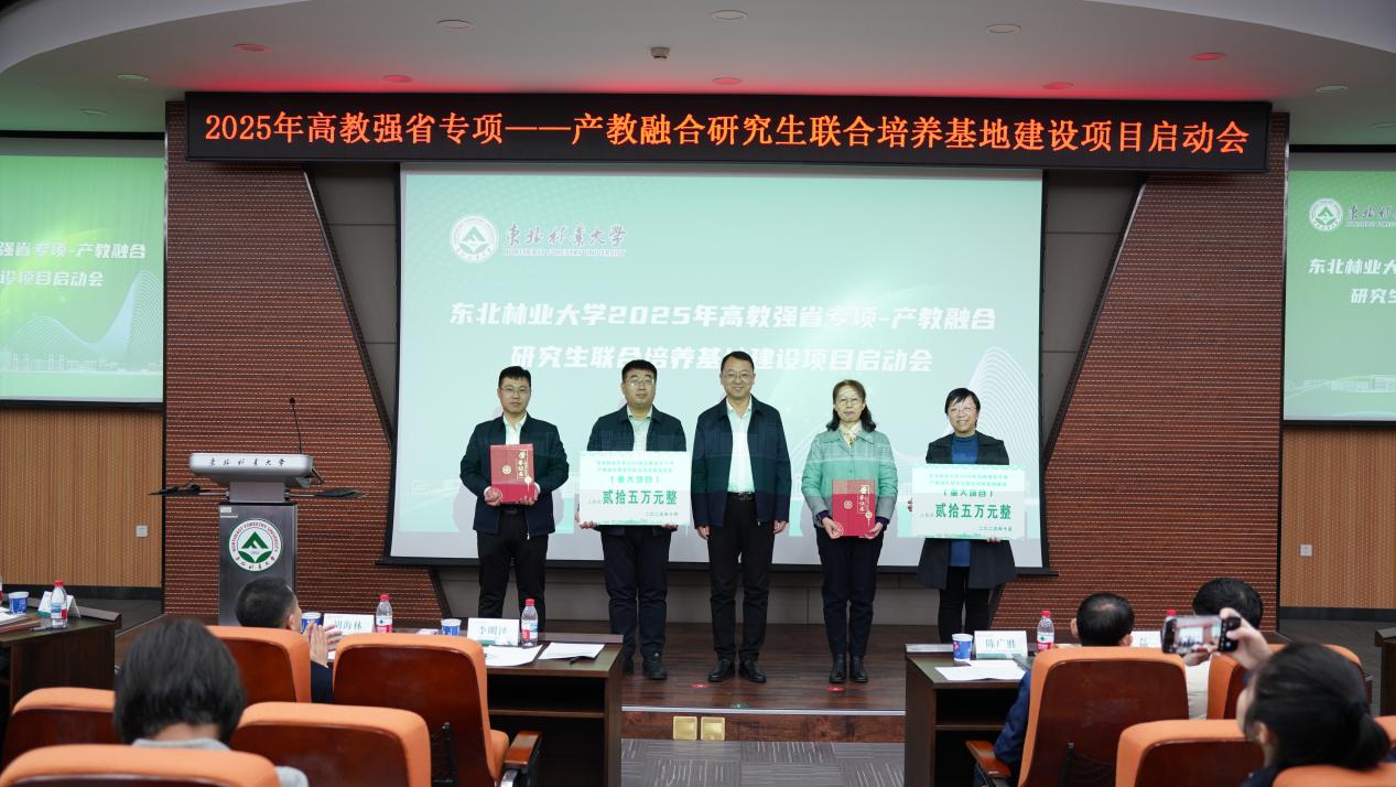 10月20日,学校在奥林楼101室召开2025年高教强省专项-产教融合研究生联合培养基地建设项目启动会。学校党委常委、副校长李明泽,中国龙江森林工业集团有限公司党委委员、副总经理胡海林,黑龙江省教育厅学位管理与研究生教育处主任马效松,哈尔滨工业大学研究生院培养处副处长侯磊,以及相关学院负责人出席会议。会议由研究生院副院长王新政主持。