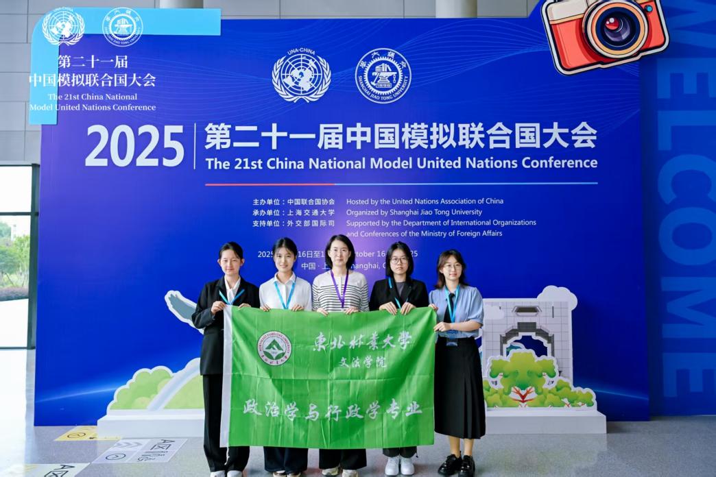10月16日至19日,第二十一届中国模拟联合国大会在上海交通大学举办,中国联合国协会副会长兼总干事胡文丽,外交部国际司参赞陈凯,上海交通大学党委书记杨振斌出席开幕式并致辞。联合国秘书长古特雷斯向大会发来贺信和视频贺辞。我校文法学院政治学与行政学专业2024级本科生邓勤琴、周凯玉、王妤鑫、李怡组成东北林业大学代表团,在教师程铭、张梦时的指导下获得佳绩。邓勤琴获得杰出代表团奖项、李怡获得最具潜力奖项。这是我校代表团第四次在我国最高级别模拟联合国活动中斩获奖项,也是首次取得同时获评两大奖项的佳绩。