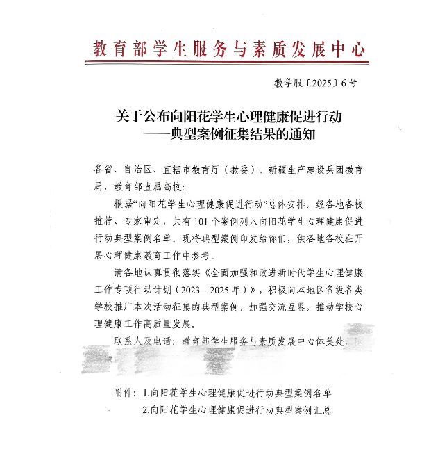 全省唯一!我校心理教师工作案例入选教育部“向阳花学生心理健康促进行动”典型案例
