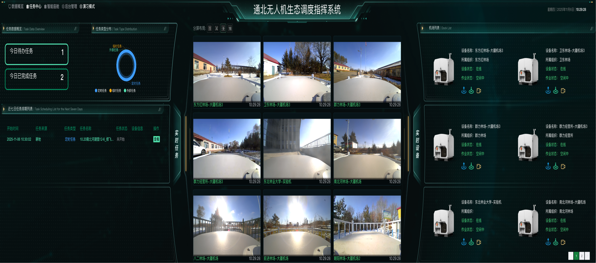 在黑龙江省通北林业局,基于机巢的无人机指挥调度系统不仅将巡护效率提升3倍以上,还大幅降低了护林员在恶劣天气下巡山的安全风险,目前已在当地实现业务化运行,年节省人力成本超百万元。在大兴安岭林区,系统可提前7天预测火灾风险等级,并精准定位火点位置,为森林防火工作提供了有力技术支持。