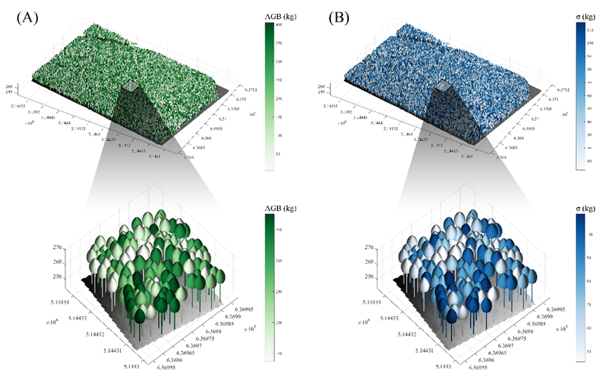 基于无人机激光雷达数据的单木生物量及不确定性估算结果