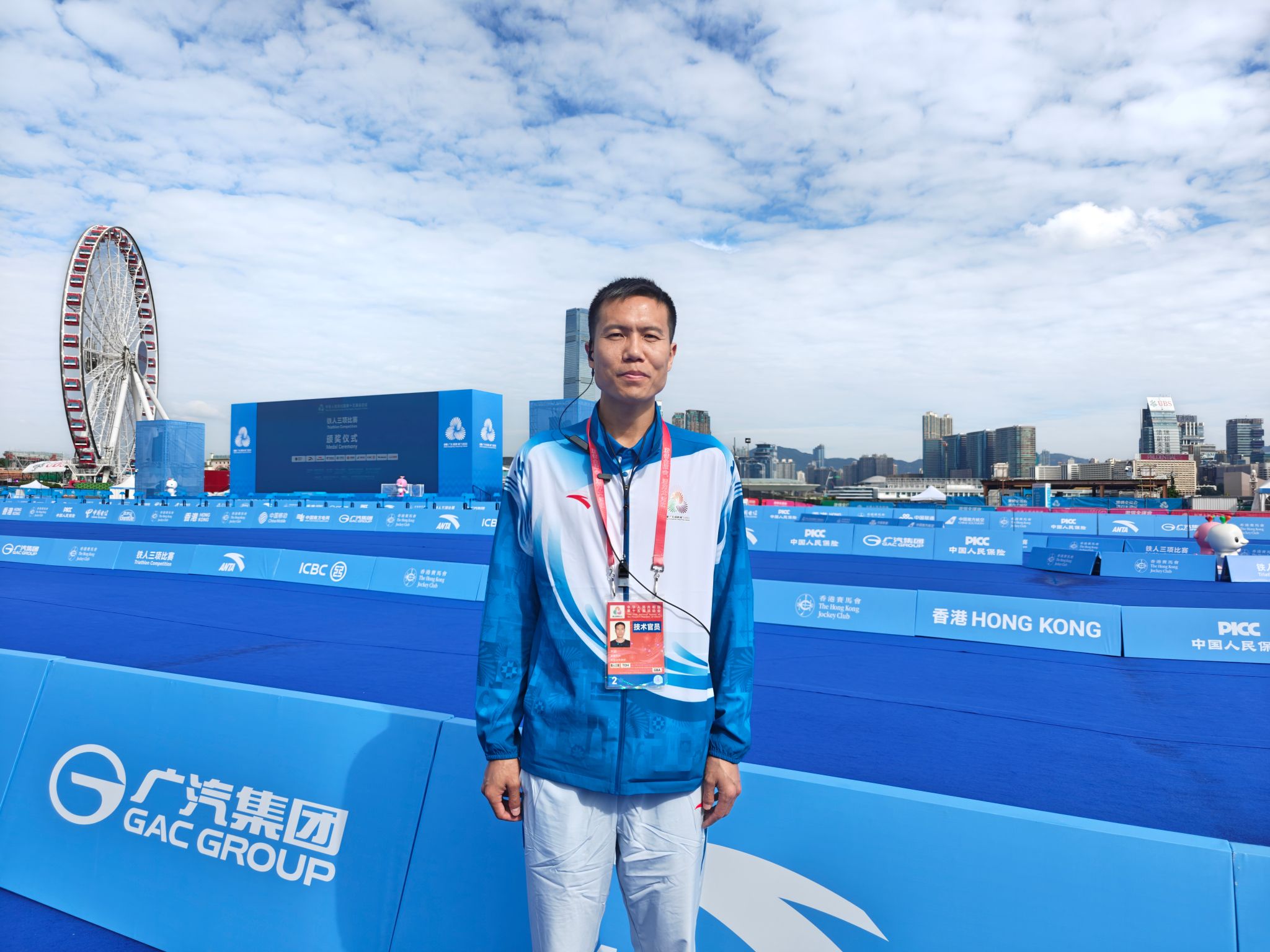 教师刘超是铁人三项国际二级、国家级裁判员,在本届第十五届全运会中担任技术代表助理,协助技术代表开展相关工作。他从2013年开始参与铁人三项赛事的执裁工作。多年来,积累了丰富的执裁经验,曾多次参与世界单项锦标赛、世界杯赛事、武汉军运会以及上一届全运会等多项国内外重大赛事的裁判工作,展现出扎实的专业能力和执裁水平。刘超介绍,本届全运会铁人三项赛事全部项目由香港赛区承办,赛事包括男子、女子个人赛以及混合接力项目。赛道设计独具特色,途经维多利亚港、中环商业区、香港特区政府总部、中环海滨长廊等多个香港知名地标,充分展现了香港的城市风貌与文化魅力,吸引了社会各界的广泛关注。他表示,将尽职尽责,保障赛事的顺利举行,也祝贺运动员们再创佳绩!