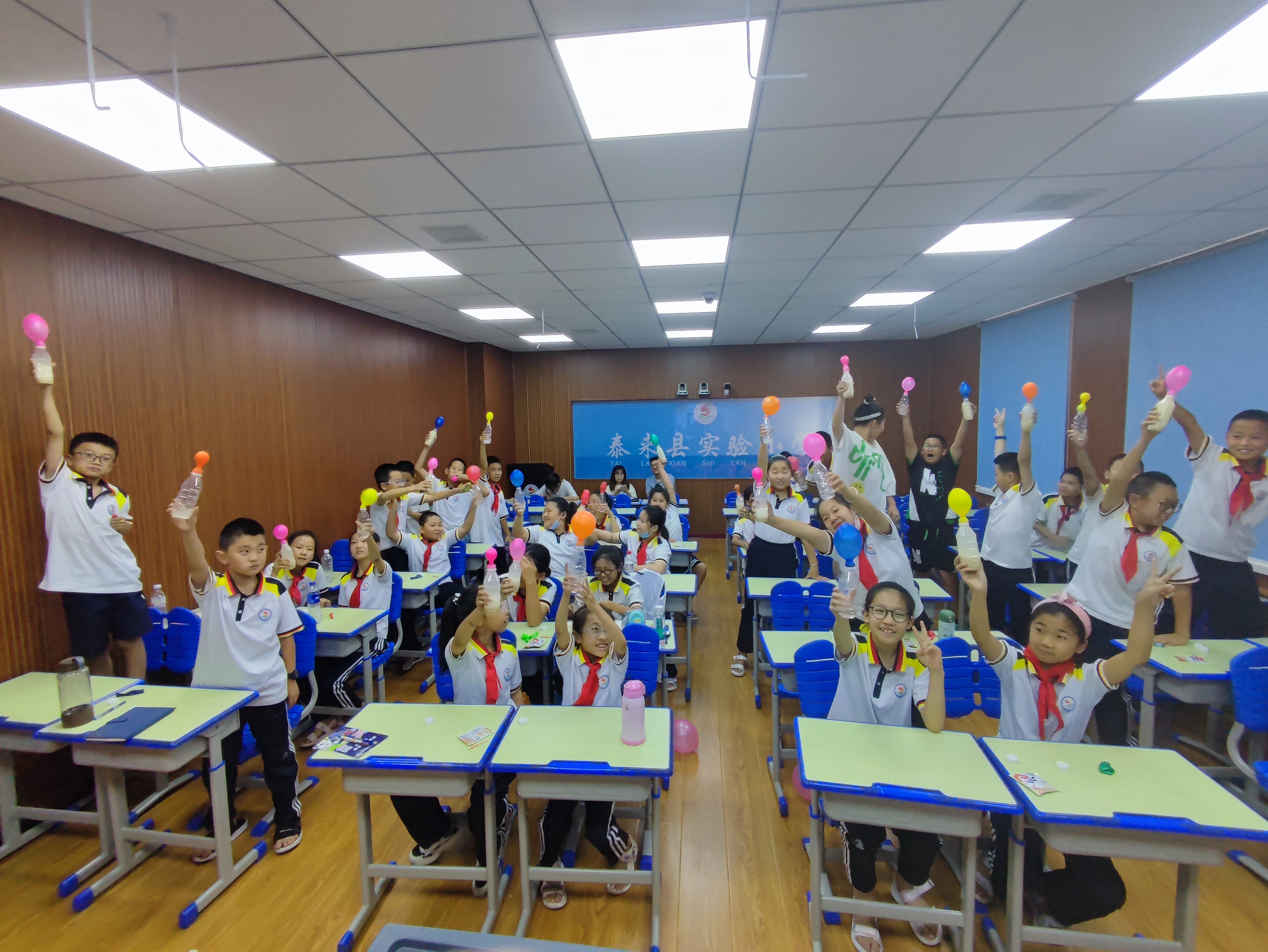 黑龙江省泰来县是东北林业大学的定点帮扶县,“小水滴公益课堂”团队自2018年起,积极响应国家乡村振兴战略,每年暑期深入泰来,为当地的孩子们带去精心设计的科普课程和研学活动。从单纯的科普讲座发展到素质拓展、科普实验和研学活动等多样化的形式,激发了孩子们的科学兴趣。例如,课程研发团队设计了“初识酸碱性”“超级空气炮”“爱喝水的杯子”等30门经典课程,采用启发式、探究式的教学方法,让书本上的知识在孩子们心中“活”起来。