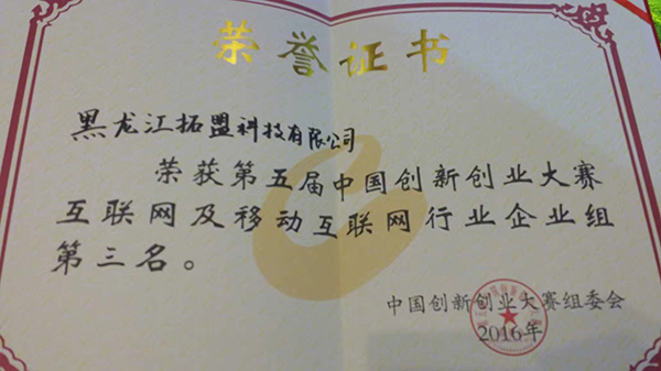 10月17日,第五届中国创新创业大赛互联网及移动互联网行业总决赛在浙江桐乡落幕。我校教师邱兆文的黑龙江拓盟科技有限公司在300余个互联网行业入围项目中脱颖而出,获得第三名。这也是我省唯一一个获奖企业。
