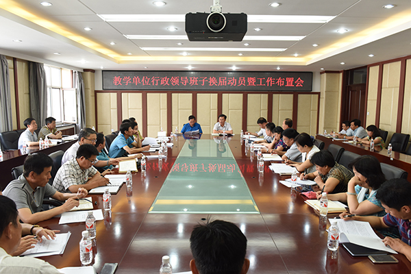今年是我校中层领导班子换届年,根据本学期初制定的干部调整工作方案,结合工作实际,在学校本科教学工作审核评估结束后,学校党委立即启动了教学单位行政领导班子换届工作。7月18日上午,学校在综合办公楼第八会议室召开教学单位行政领导班子换届动员暨工作布置会。党委书记吴国春、校长杨传平、各教学单位党政负责人以及党委组织部相关人员参加了会议。