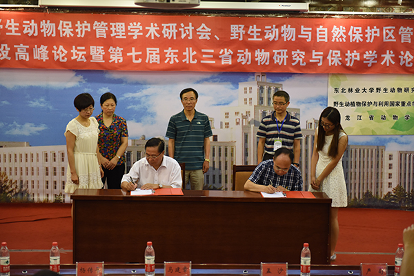 野生动物资源学院院长张伟和济民可信集团副董事长李义保签署协议