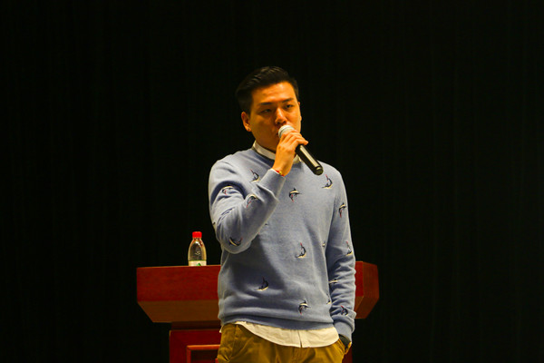 在主持人和观众的热烈掌声中,本次讲座正式拉开帷幕。陈亚豪幽默式的语言“别看我外表高冷,其实我内心是炽热的”瞬间拉近了和场下观众的距离。从大学生活到步入社会,从国企员工到创业CEO,他用缓慢清晰的语调讲述着自己每一阶段的经历和感悟。谈到梦想,他表示要学会坚持,并举了自己朋友因为梦想牺牲节假日去开演唱会的故事。“梦想是用来坚持的,而不是用来实现的”,陈亚豪如是说。谈到亲情,他援引自身经历来劝诫大家:梦想潜伏在现实中、生活责任中和亲人期望中,很多为了梦想不顾一切的做法是不可取的。“很多年轻人追逐梦想是以伤害亲人的代价为前提的,他们在外人的眼中是孤胆英雄,但在亲人的眼里是终日的担忧和顾虑,甚至是噩梦。”一番话语引得台下观众深思。谈到大学生活,他分享了自己的日程表:白天学习,晚上十一点写两个小时的文章,之后练半个小时的舞。其有序的作息习惯受到了观众的敬佩。他表示,要想做自己喜欢的事情就要抽出时间去做,而不只是象征性的口头支付。在最后,他寄语观众“你为生活忧愁什么,我不关心,我只在乎你每天为了想要的生活在做些什么”,赢得场下雷鸣般的掌声。
