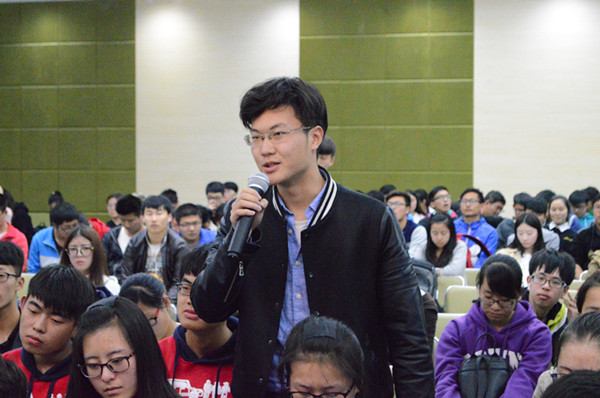 在互动环节,赵雨森教授耐心细致地回答了几位同学的现场提问。讲坛现场气氛热烈,同学们纷纷在微信墙上留言踊跃表达自己的感想和收获。2015级生命学院王国东同学说:“本期《东林师说》让我受益匪浅,赵教授深入阐述了坚持“三个自信”以及高举中国特色社会主义伟大旗帜的现实意义,让我更加深刻地了解了当代国情,并增强了作为一名当代大学生的使命感和责任感,我们一定迈好青春步伐,铸就无悔人生。”赵雨森教授旁征博引,深入浅出的报告透露着他丰富的阅历和渊博的学识,整场讲座充满了人生启迪。(乔恩杰、郭倩)