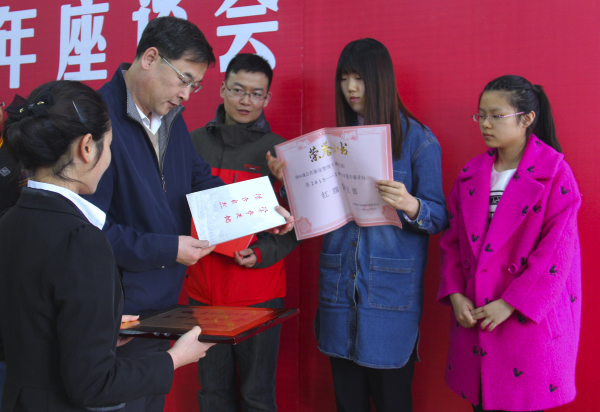 学校党委副书记蔺海波为2015年度五四表彰获奖代表颁奖
