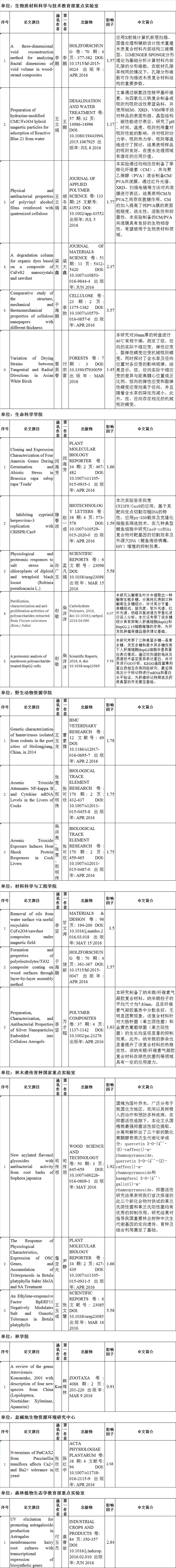 2016年4月,我校师生以“东北林业大学”为第一署名单位发表SCI论文23篇。其中生物质材料科学与技术教育部重点实验室6篇、生命科学学院5篇、野生动物资源学院3篇。